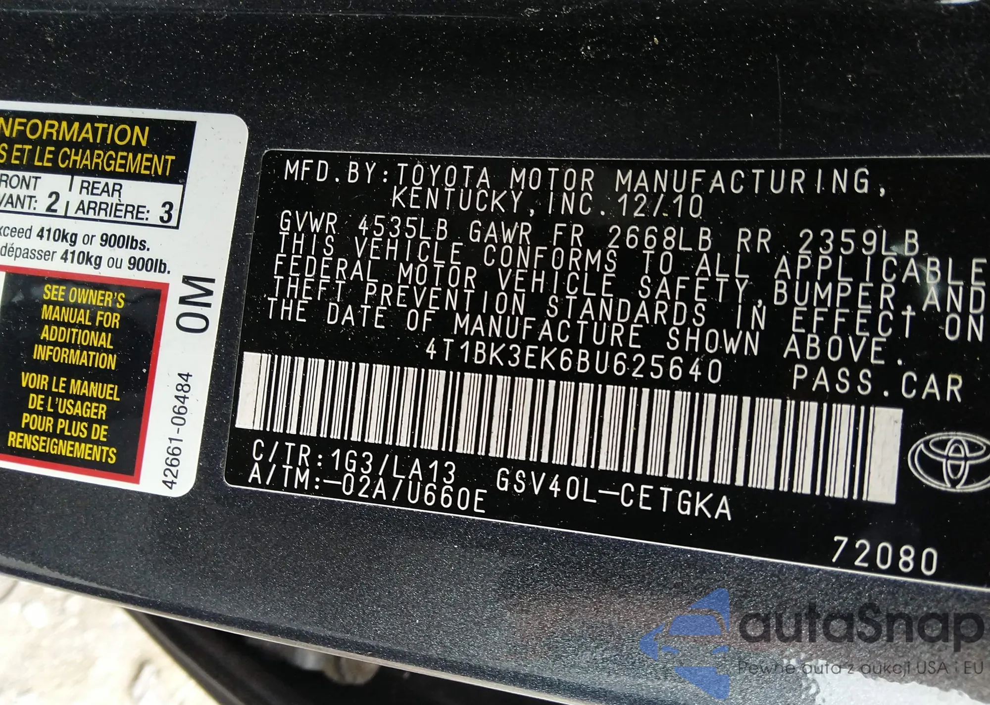VIN: 4T1BK3EK6BU625640