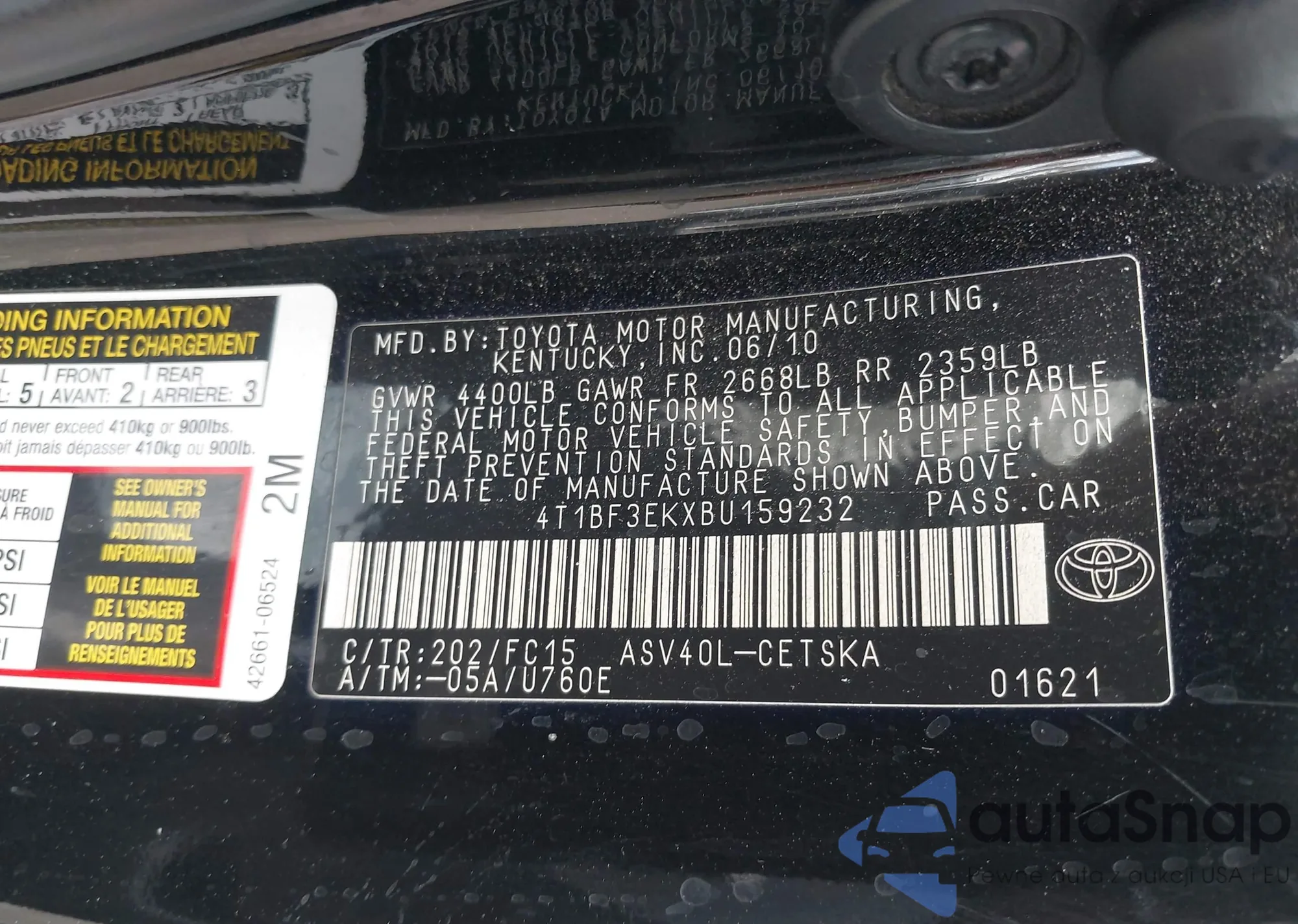 VIN: 4T1BF3EKXBU159232