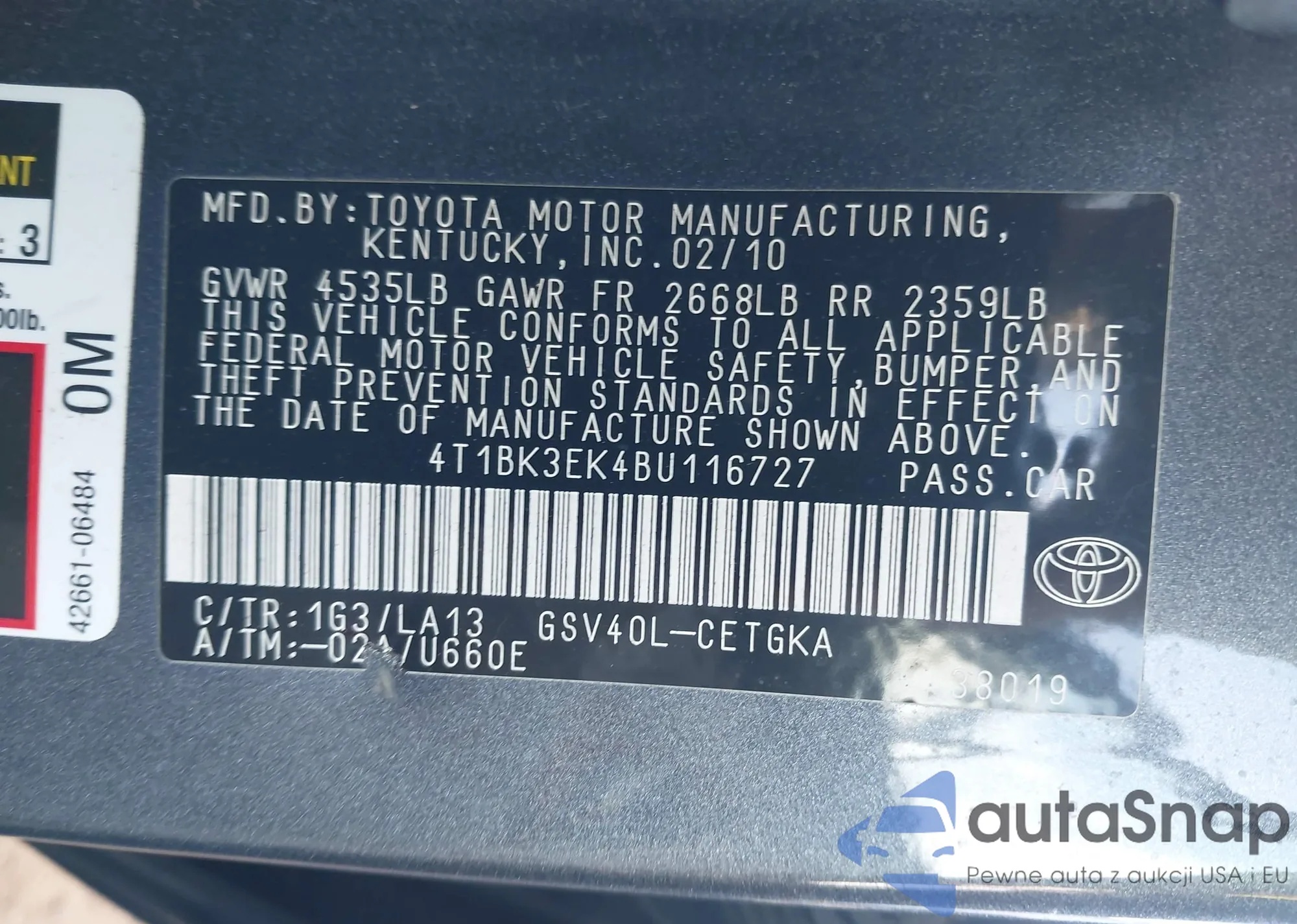 VIN: 4T1BK3EK4BU116727