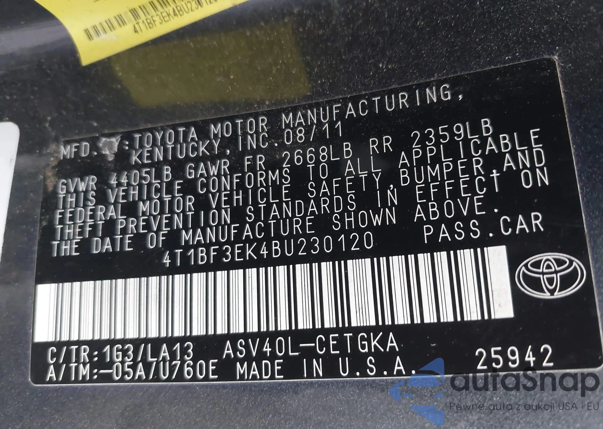 VIN: 4T1BF3EK4BU230120