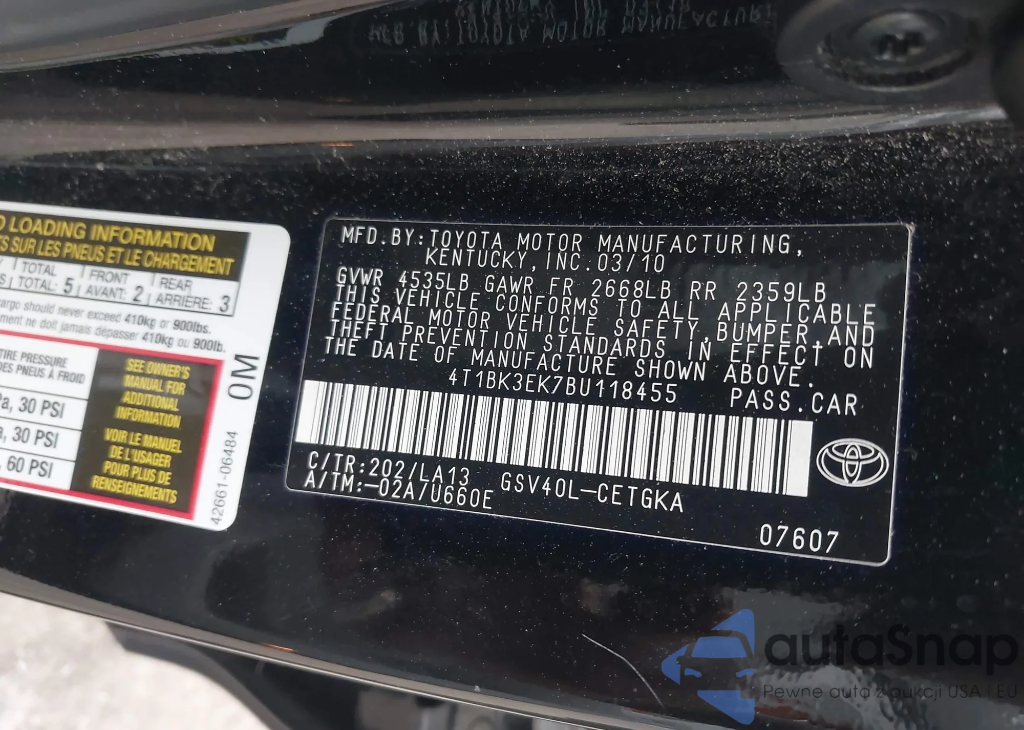 VIN: 4T1BK3EK7BU118455