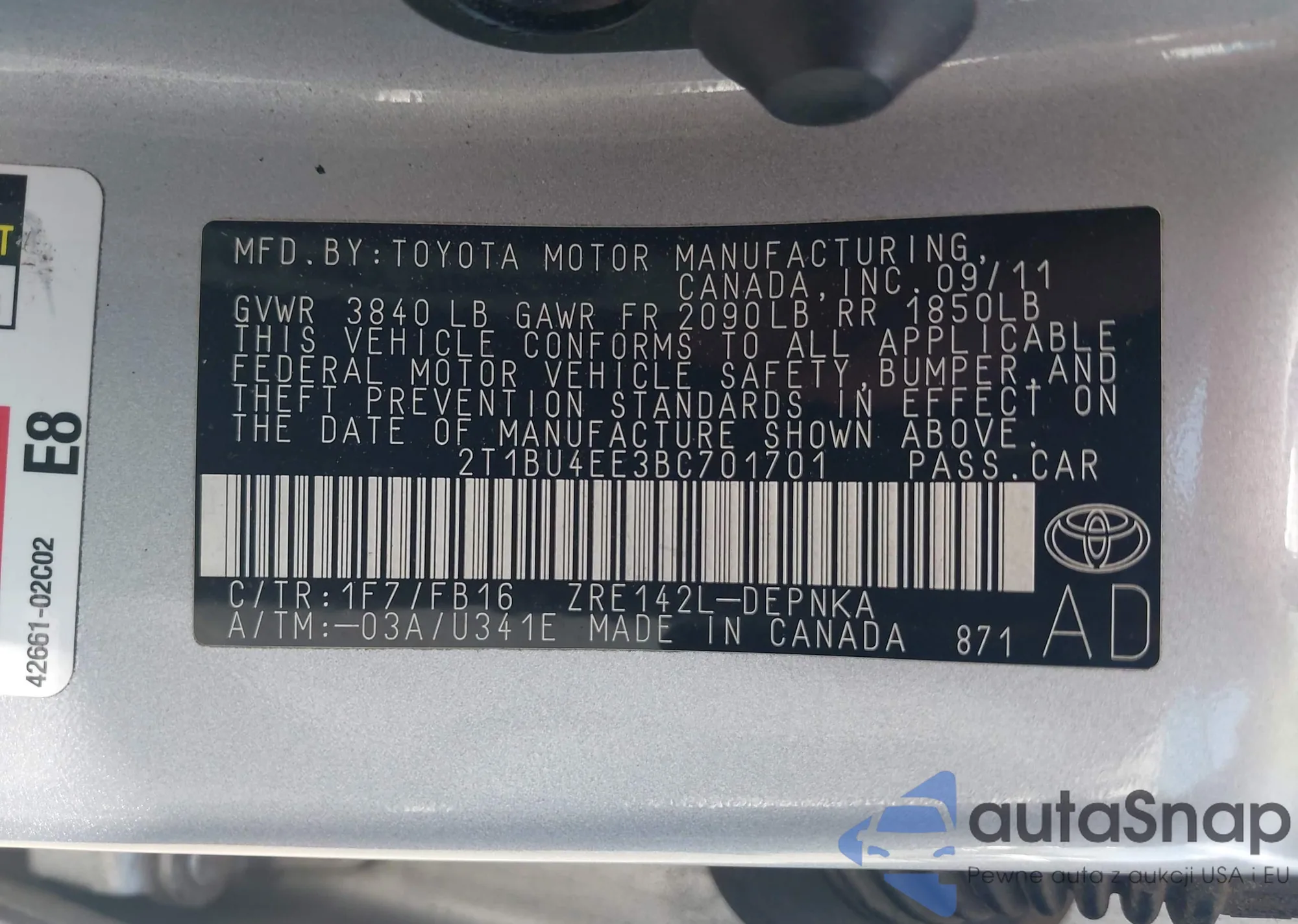 VIN: 2T1BU4EE3BC701701