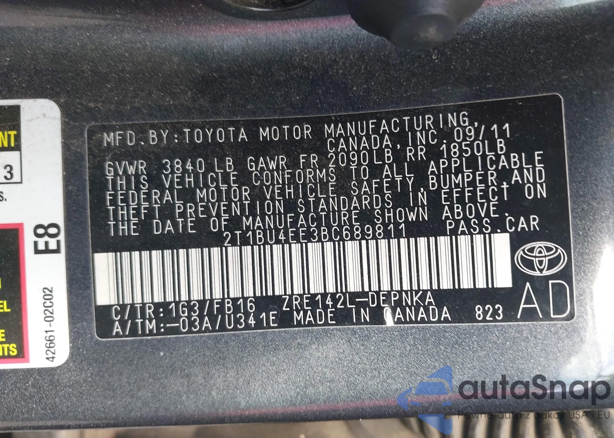 Samochód Toyota Corolla 2011 (VIN 2T1BU4EE3BC689811) nie był wcześniej licytowany. Dokumenty są czyste, przebieg odpowiada lub jest niższy niż średnia rynku. Sprzedaje go firma ubezpieczeniowa – polecamy zakup. Dostawa do portu zajmie ok. 6–8 tygodni.