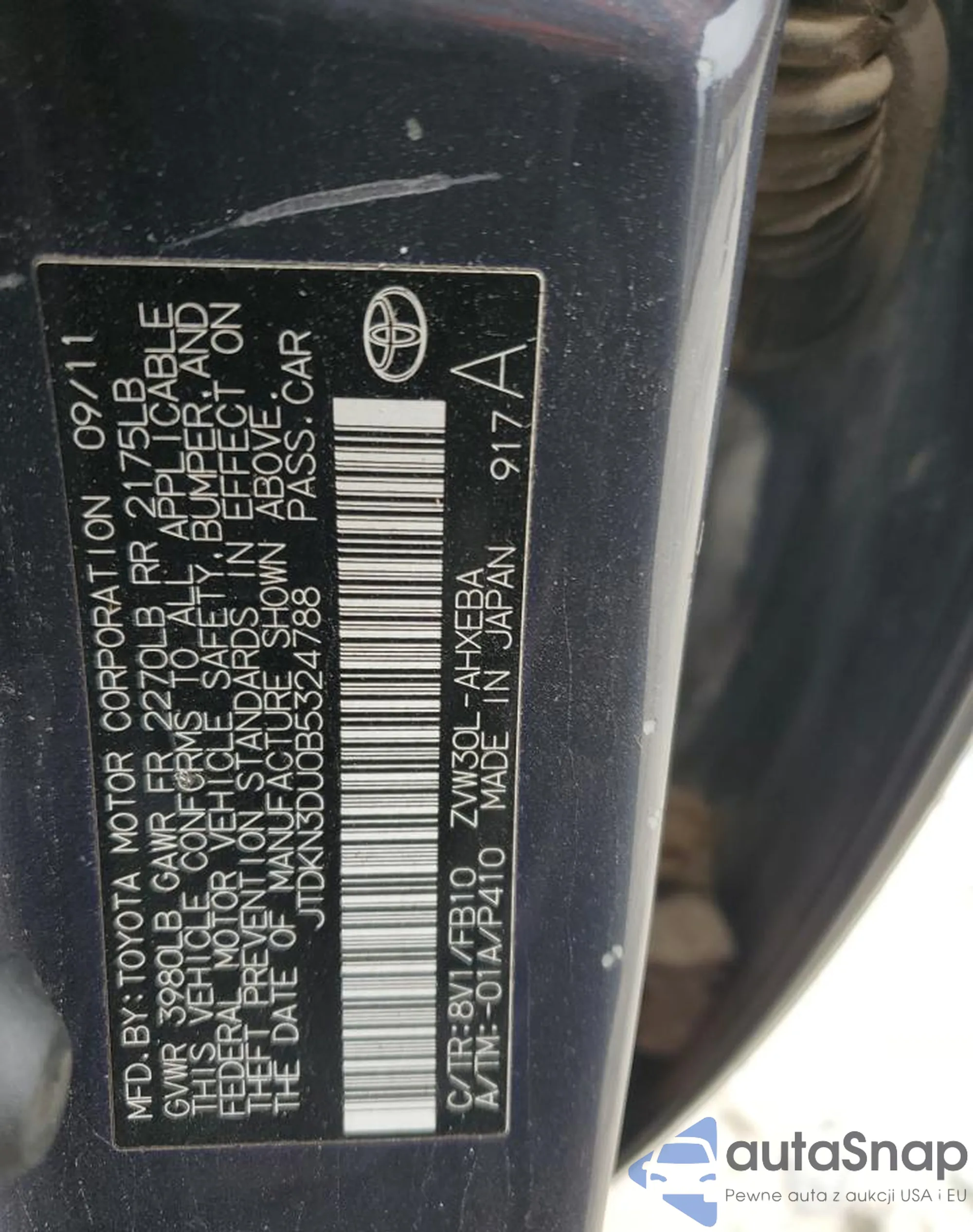 VIN: JTDKN3DU0B5324788