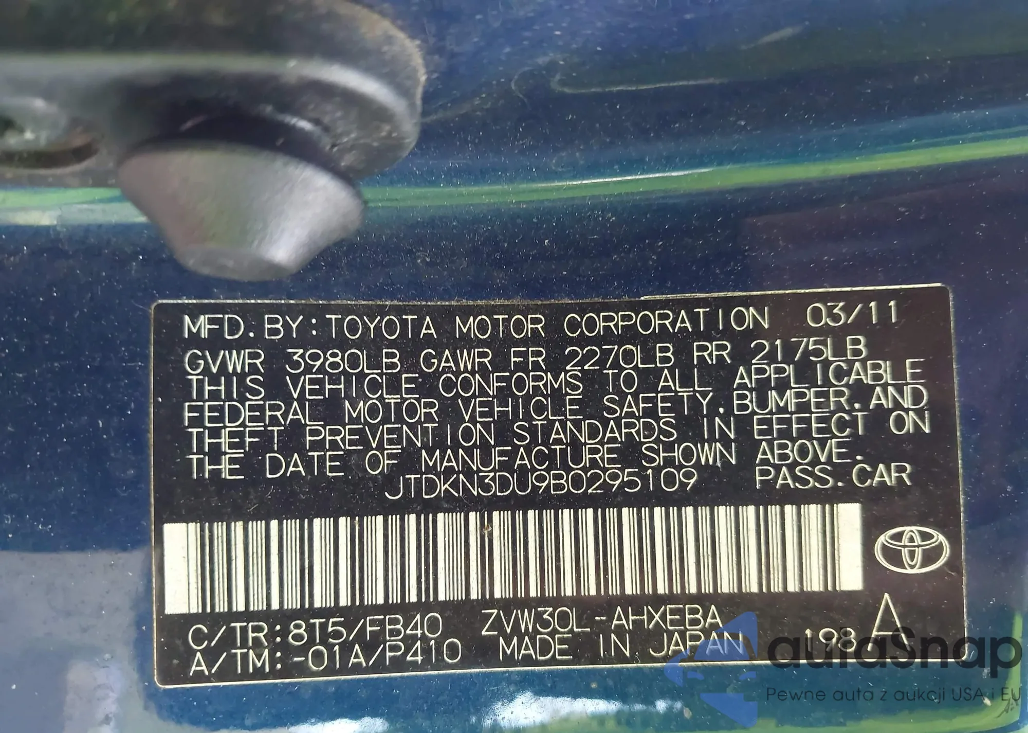 VIN: JTDKN3DU9B0295109