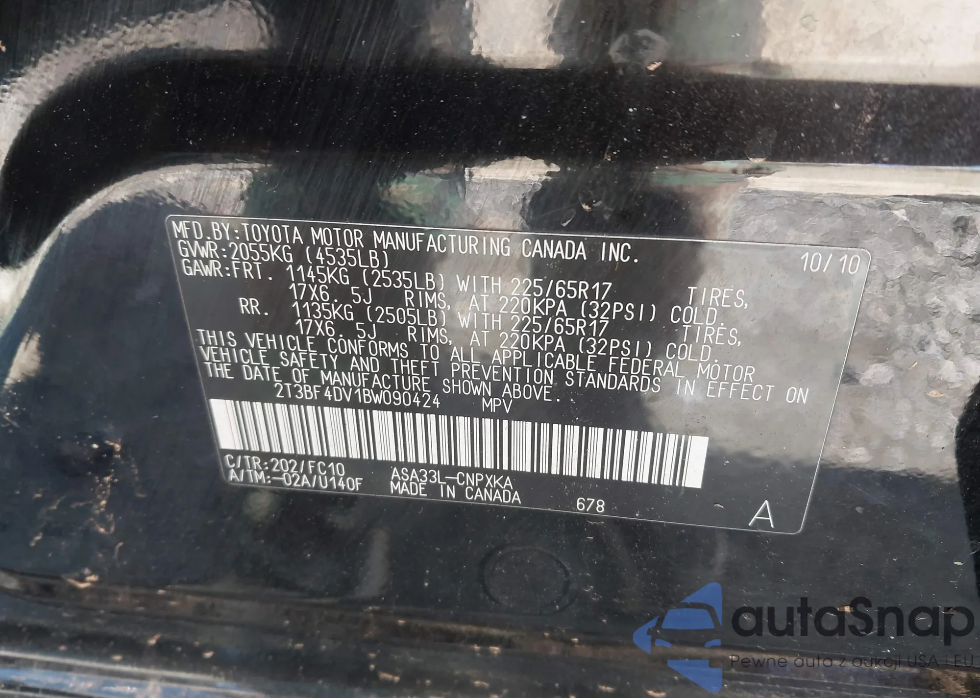 VIN: 2T3BF4DV1BW090424