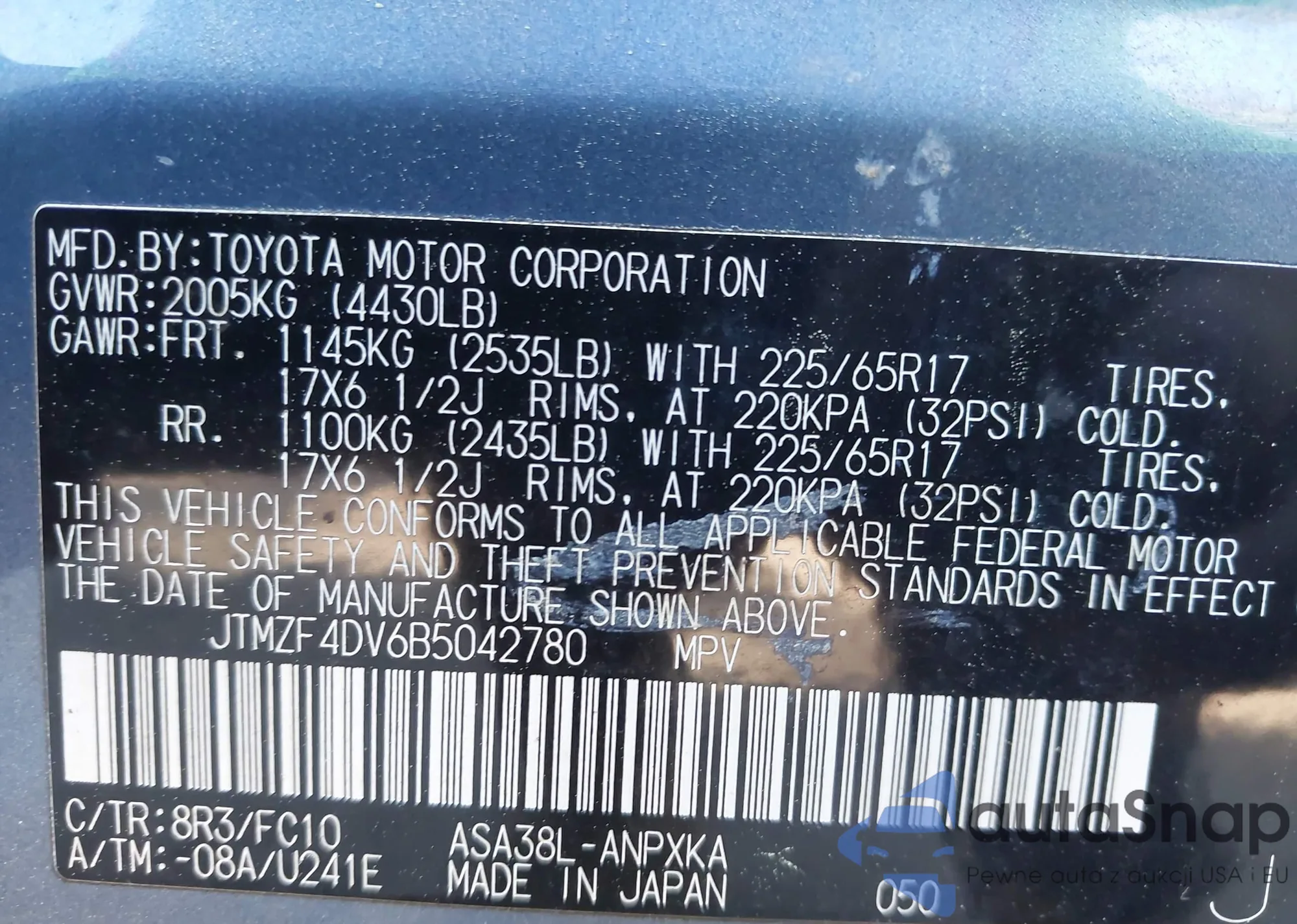VIN: JTMZF4DV6B5042780