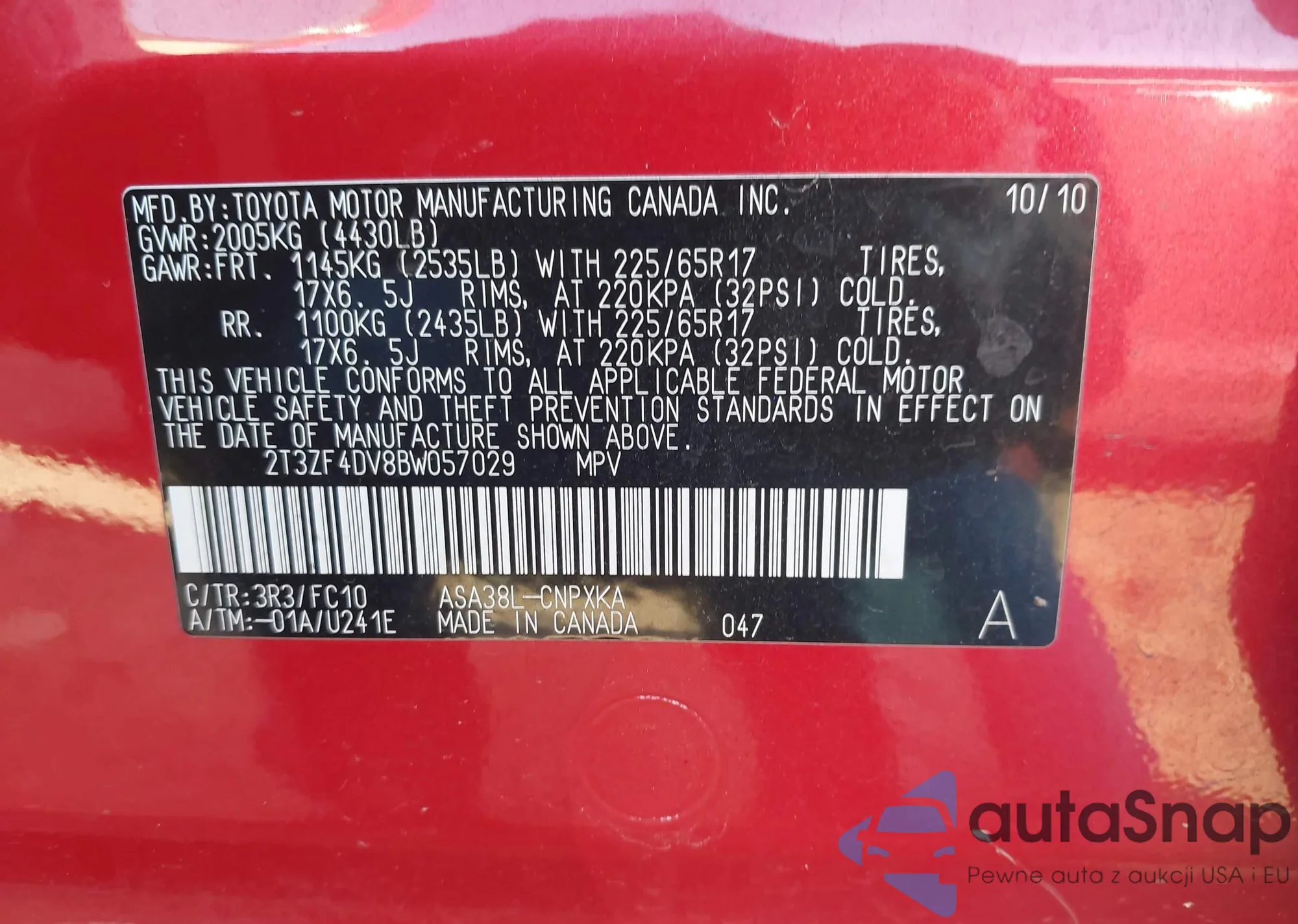 VIN: 2T3ZF4DV8BW057029