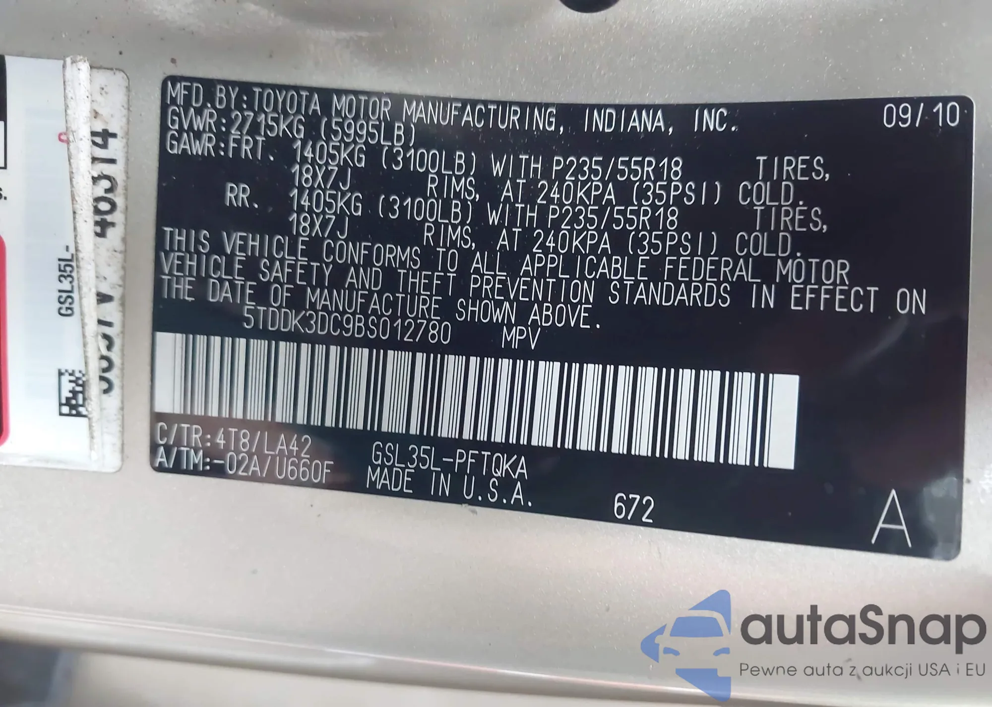 VIN: 5TDDK3DC9BS012780