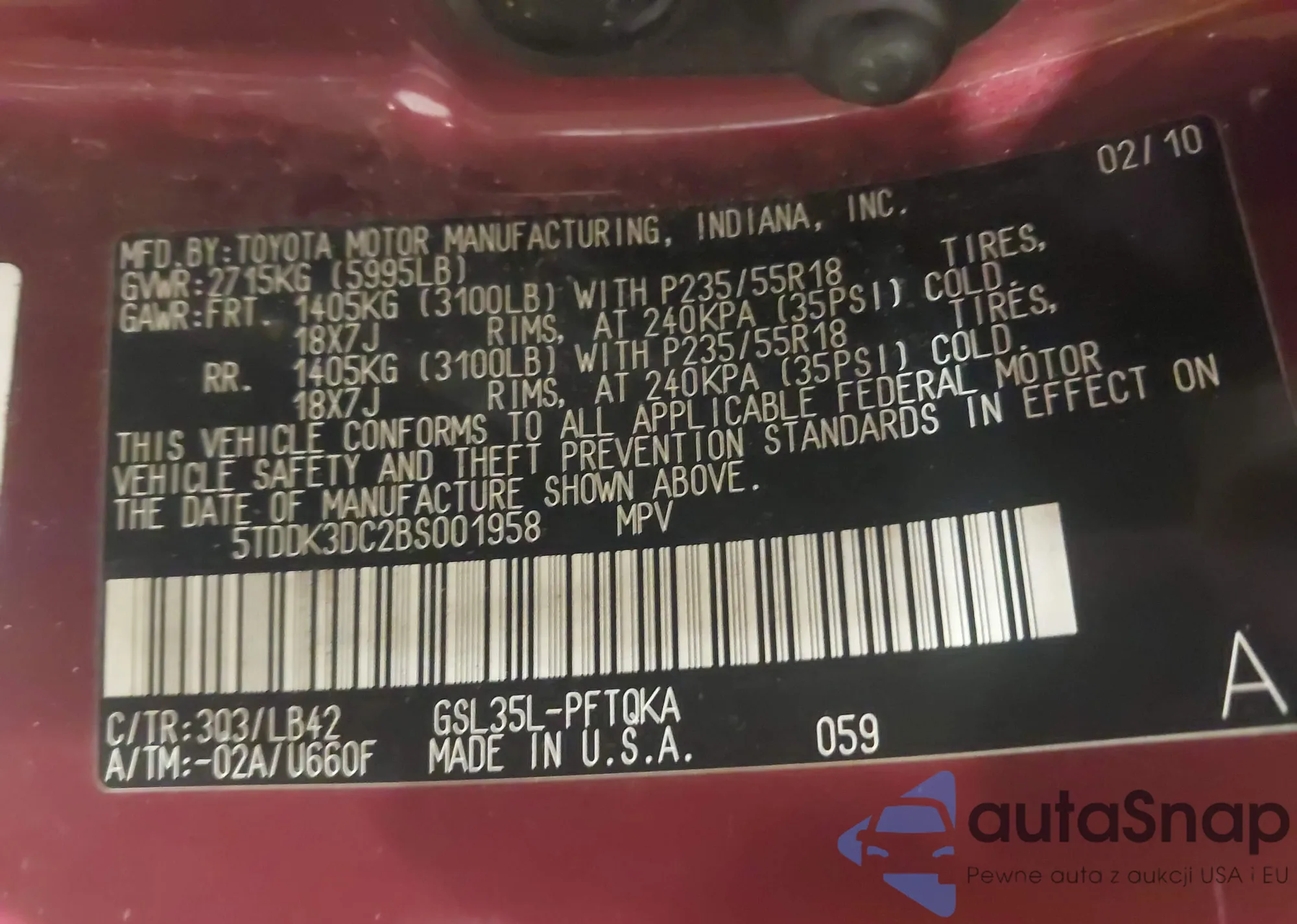 VIN: 5TDDK3DC2BS001958