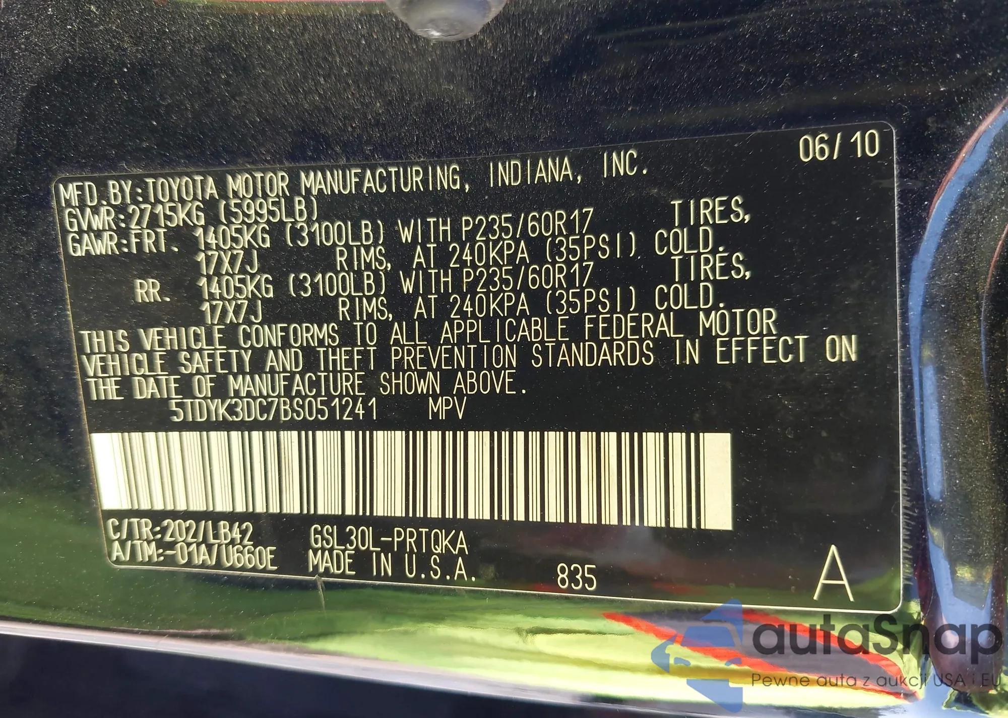 VIN: 5TDYK3DC7BS051241