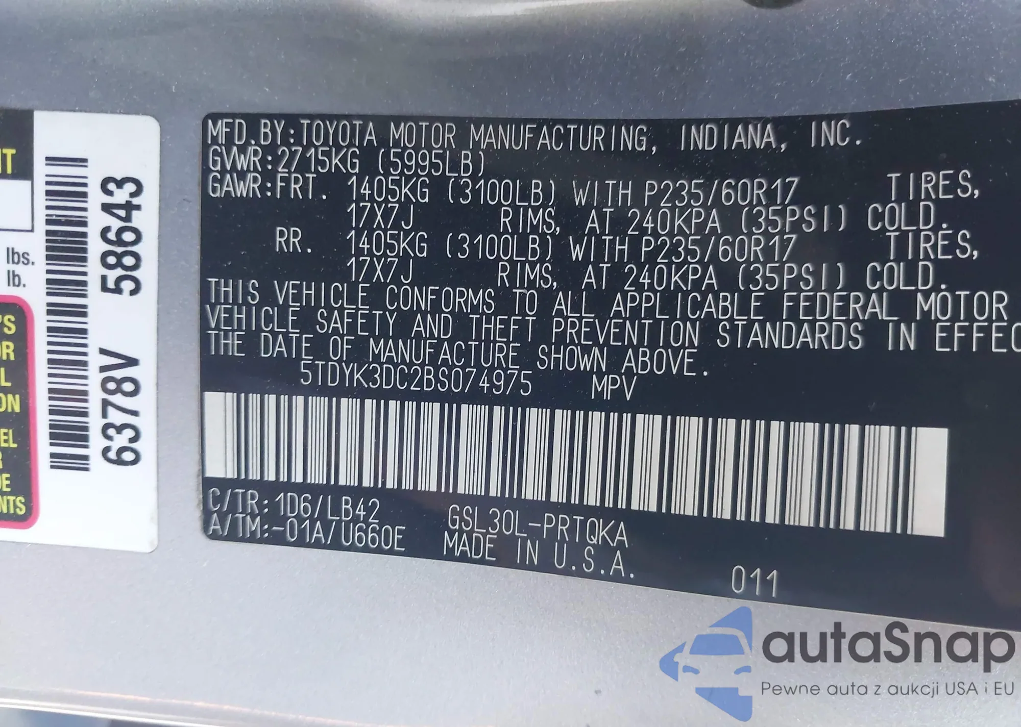 • VIN: 5TDYK3DC2BS074975