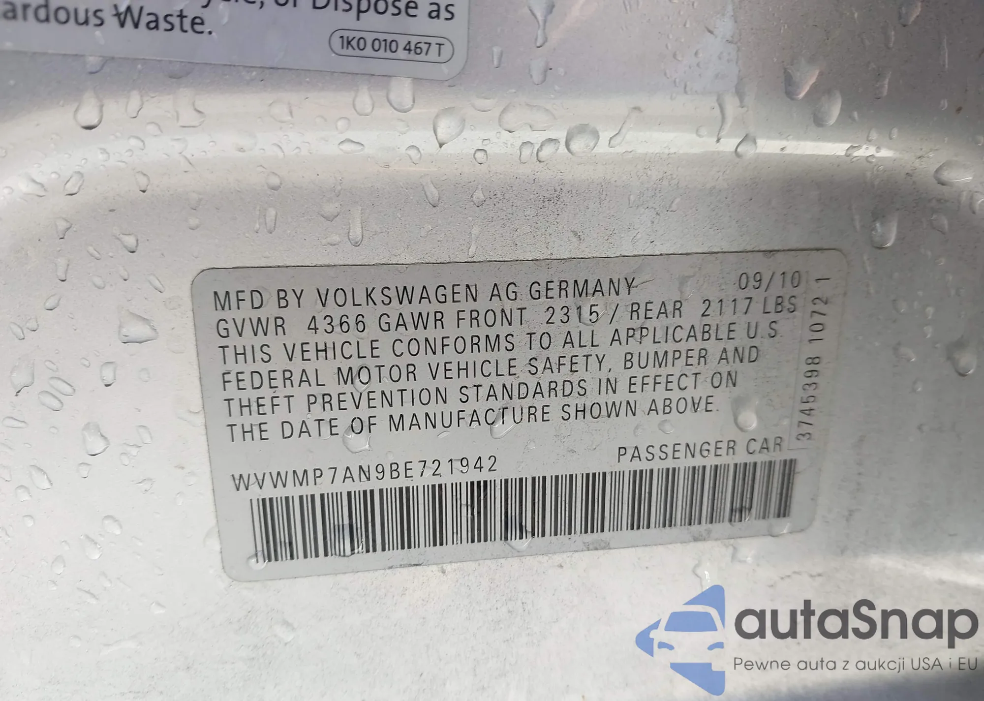 Samochód Volkswagen Passat CC 2011 (VIN WVWMP7AN9BE721942) sprzedaje go niezweryfikowany sprzedawca. Zalecamy raport Carfax i potwierdzenie możliwości rejestracji pojazdu przed zakupem.