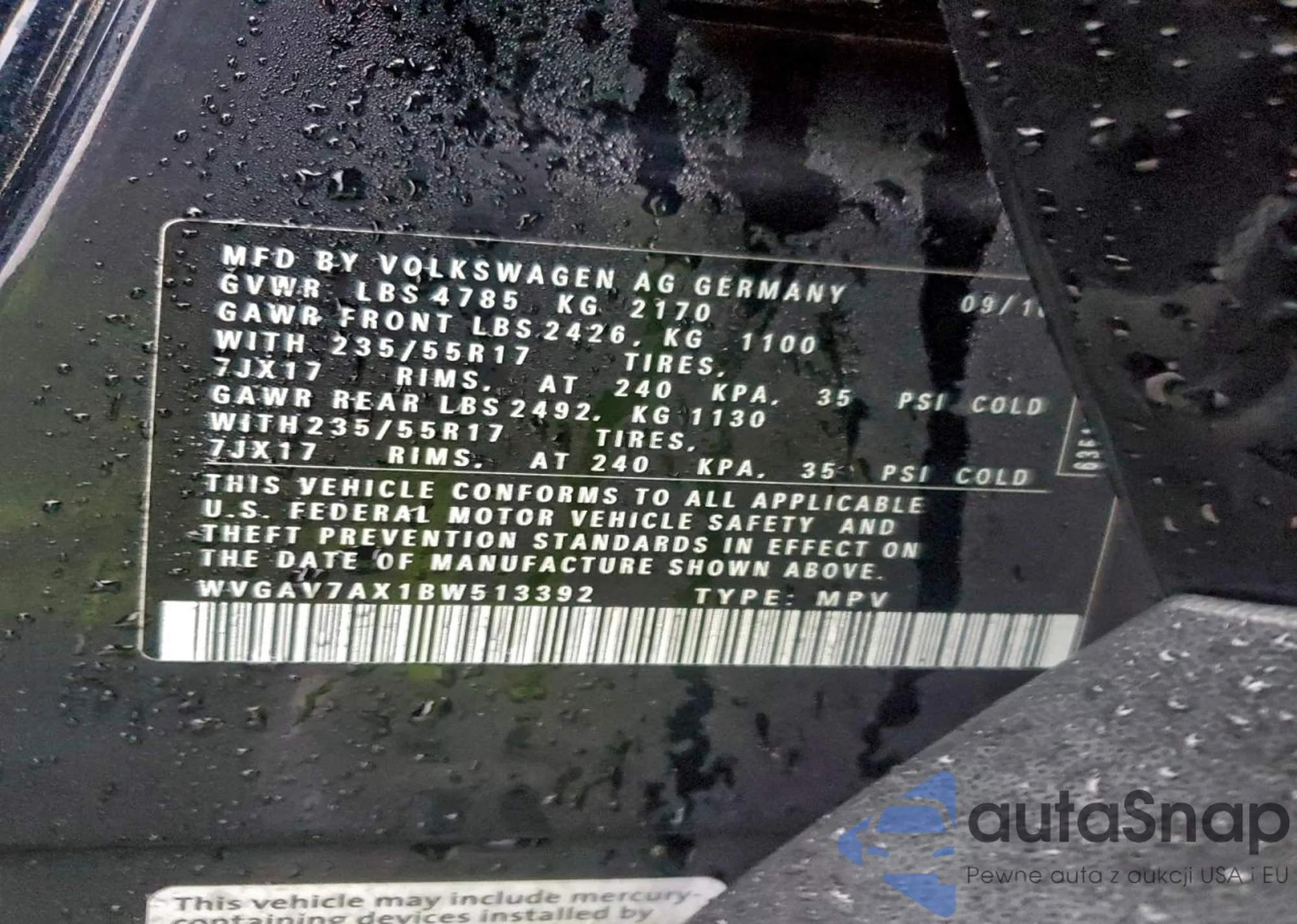 VIN: WVGAV7AX1BW513392