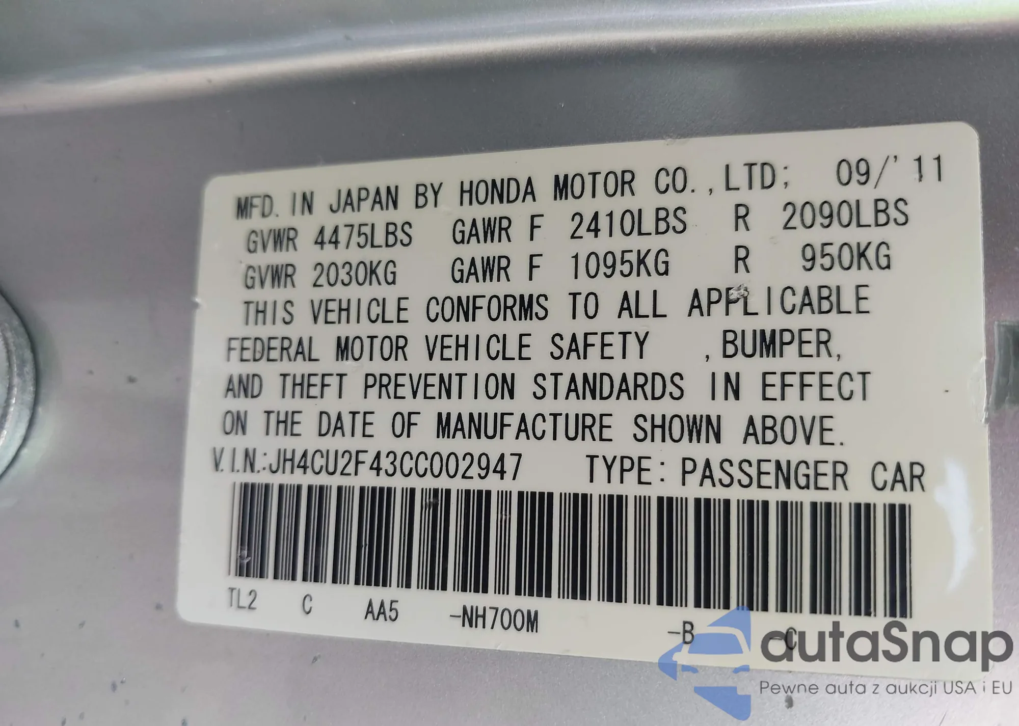 VIN: JH4CU2F43CC002947