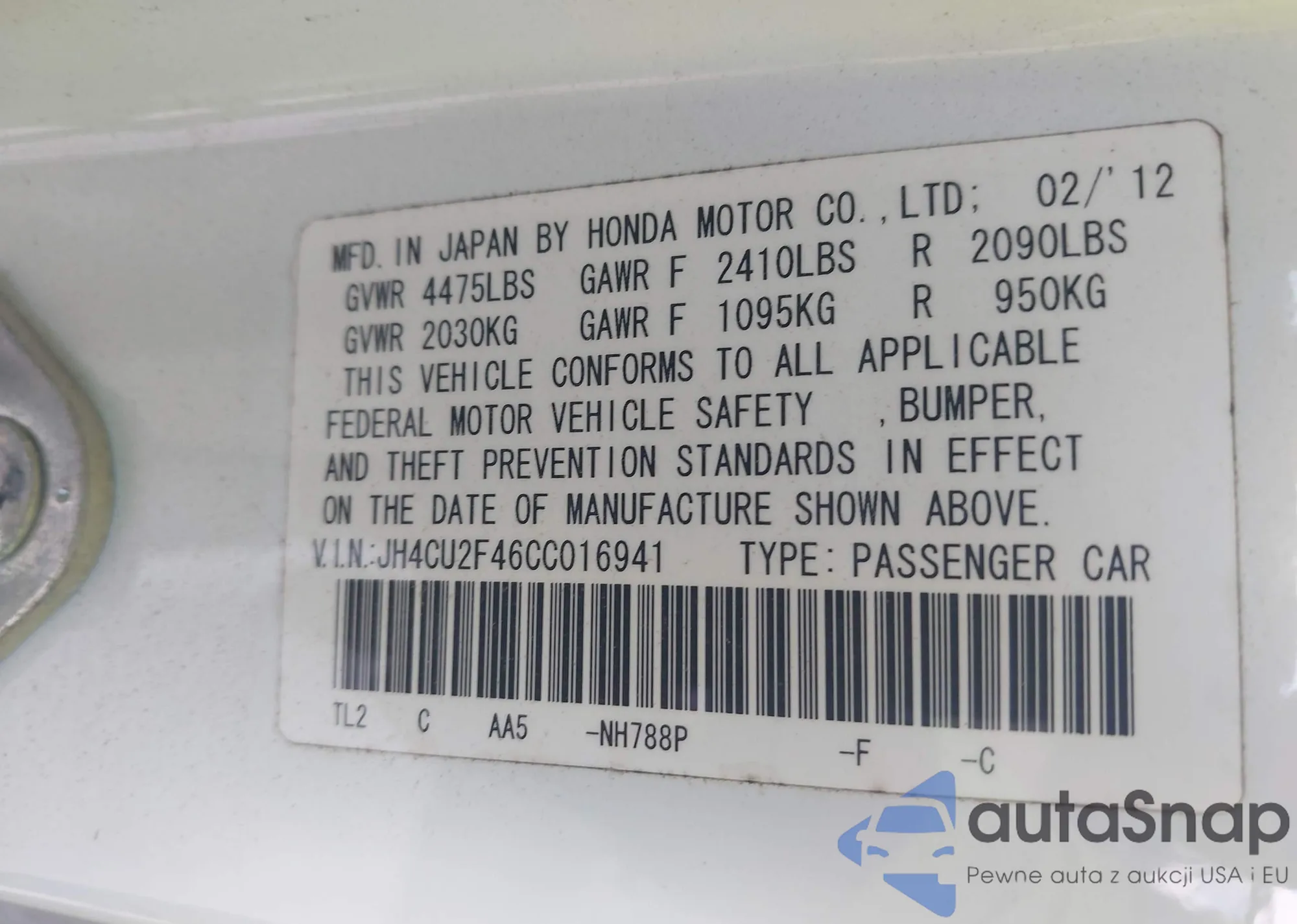 VIN: JH4CU2F46CC016941
