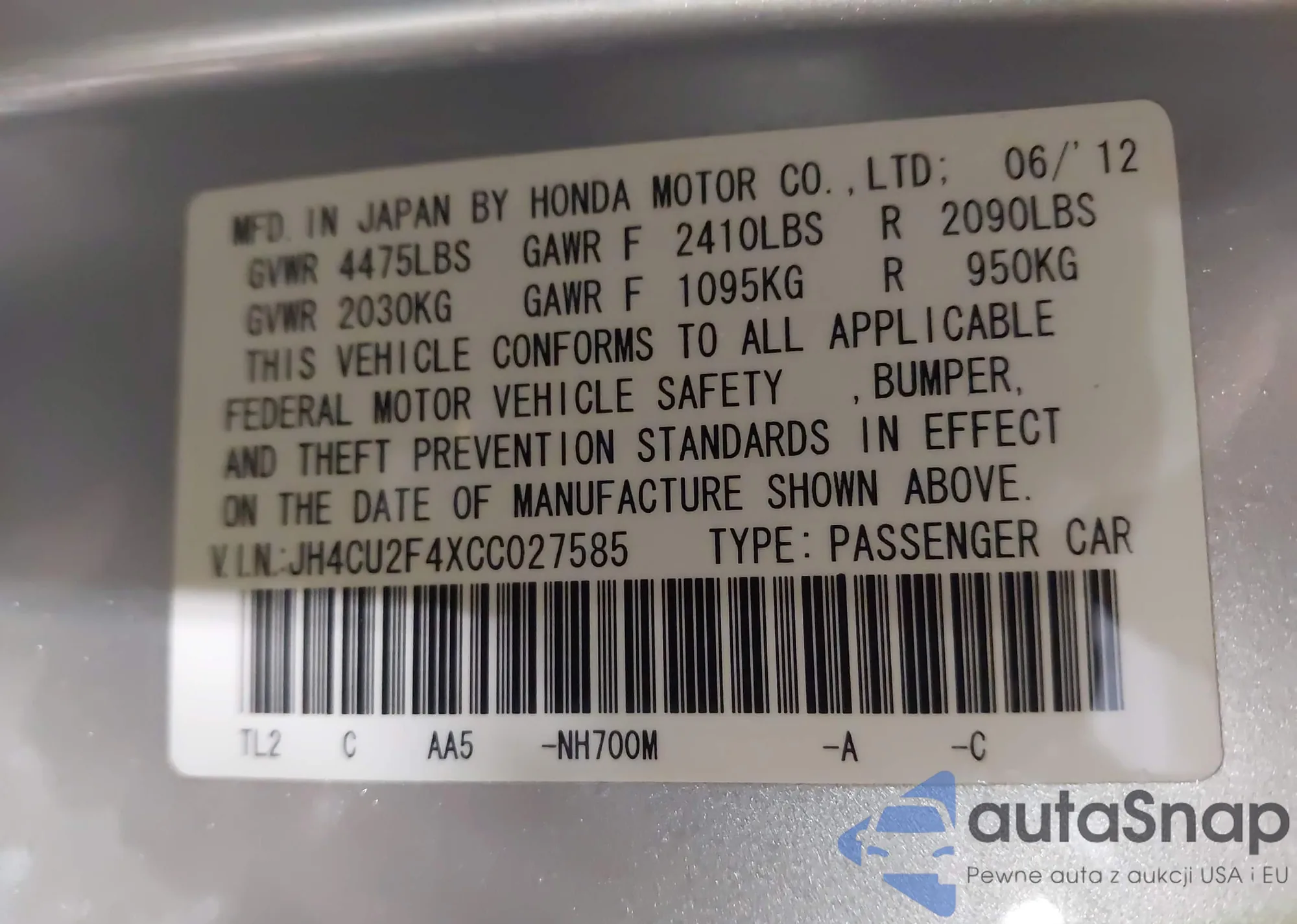 • VIN: JH4CU2F4XCC027585