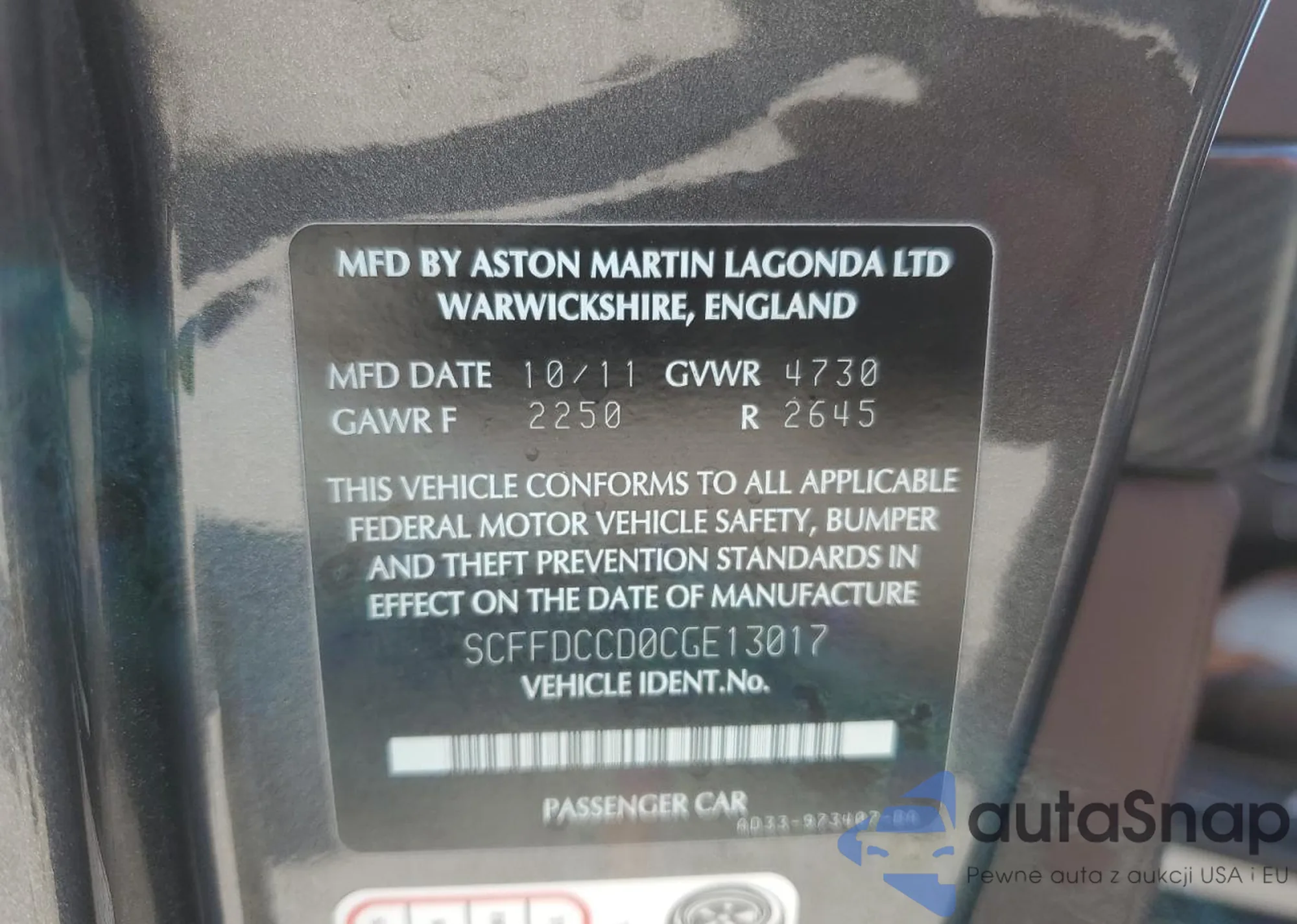 VIN: SCFFDCCD0CGE13017