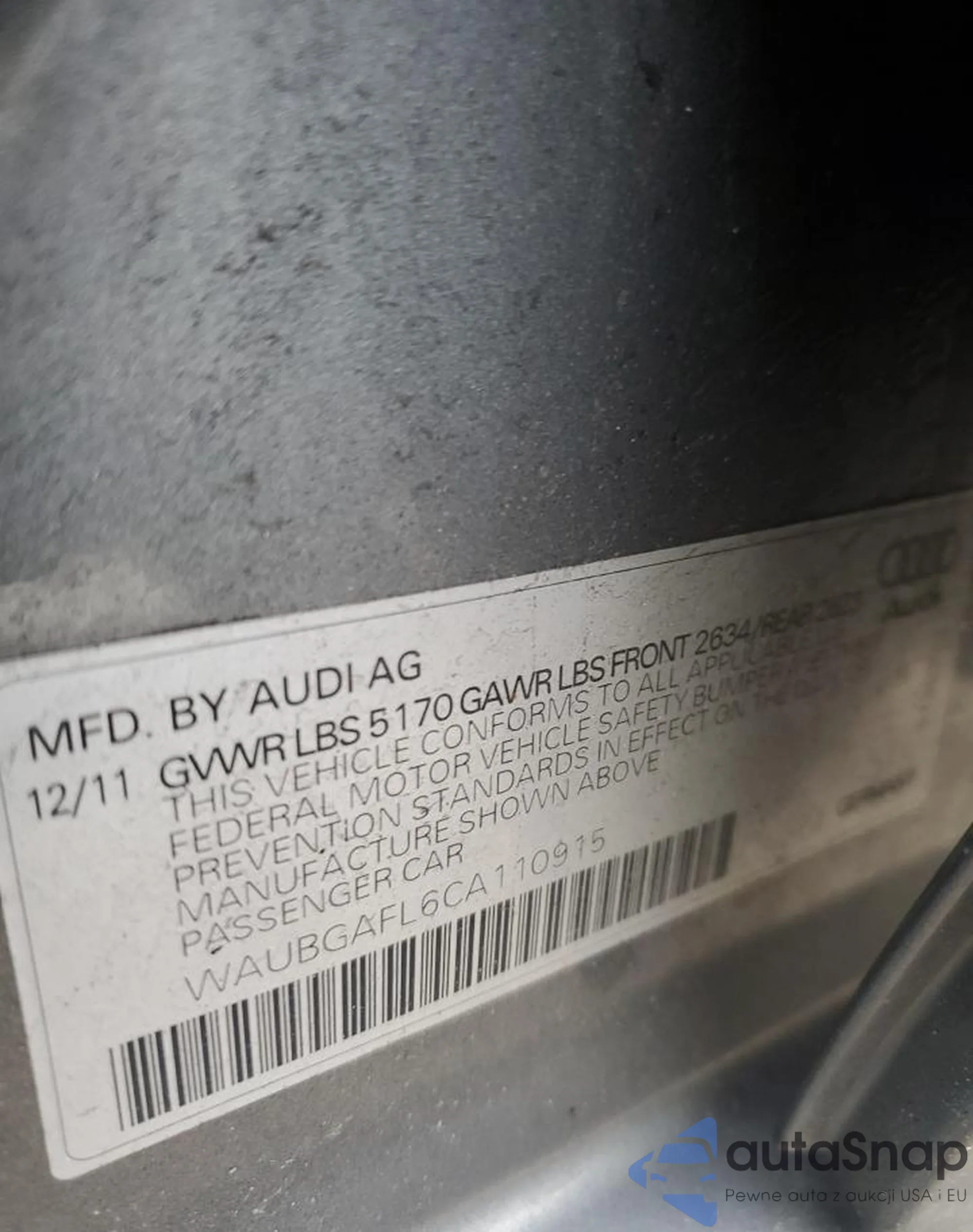 VIN: WAUBGAFL6CA110915