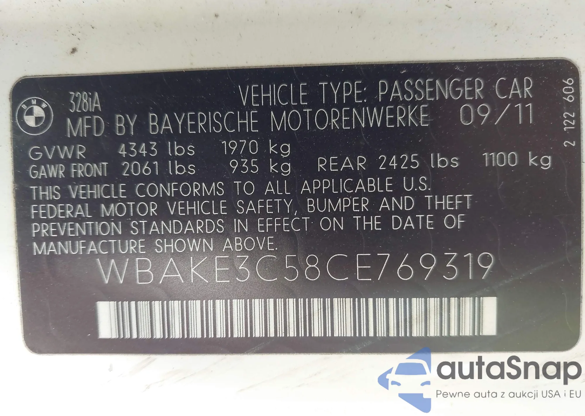 VIN: WBAKE3C58CE769319