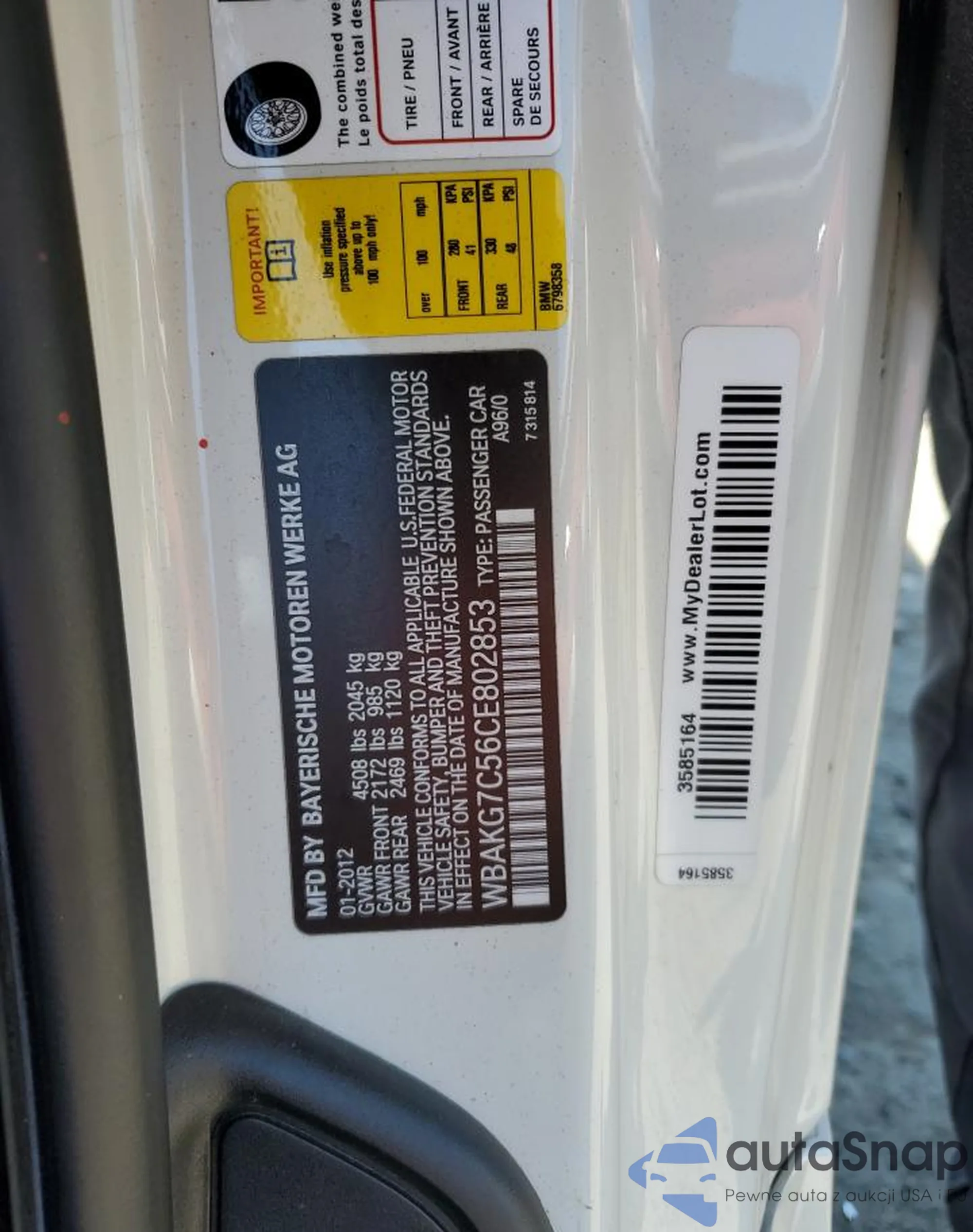 VIN: WBAKG7C56CE802853