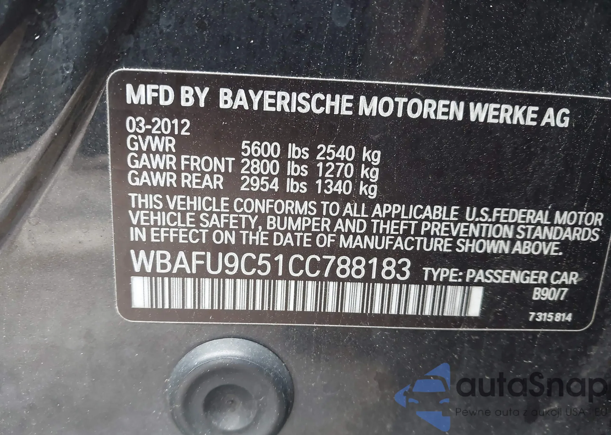 VIN: WBAFU9C51CC788183