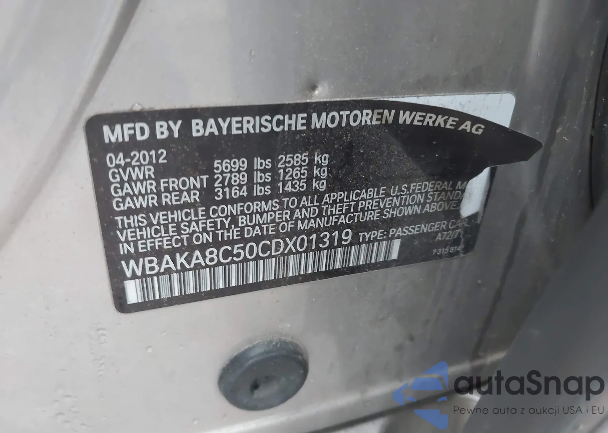 VIN: WBAKA8C50CDX01319