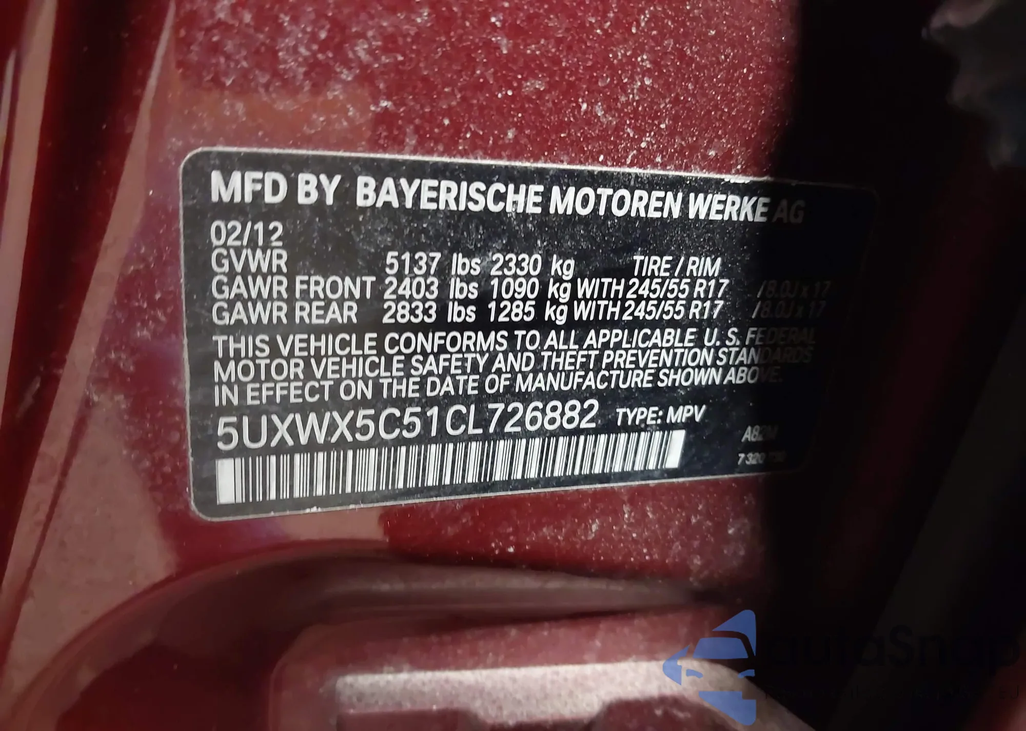 Samochód BMW X3 2012 (VIN 5UXWX5C51CL726882) nie był wcześniej licytowany. Dokumenty są czyste, przebieg odpowiada lub jest niższy niż średnia rynku. Sprzedaje go firma ubezpieczeniowa – polecamy zakup. Dostawa do portu zajmie ok. 6–8 tygodni.
