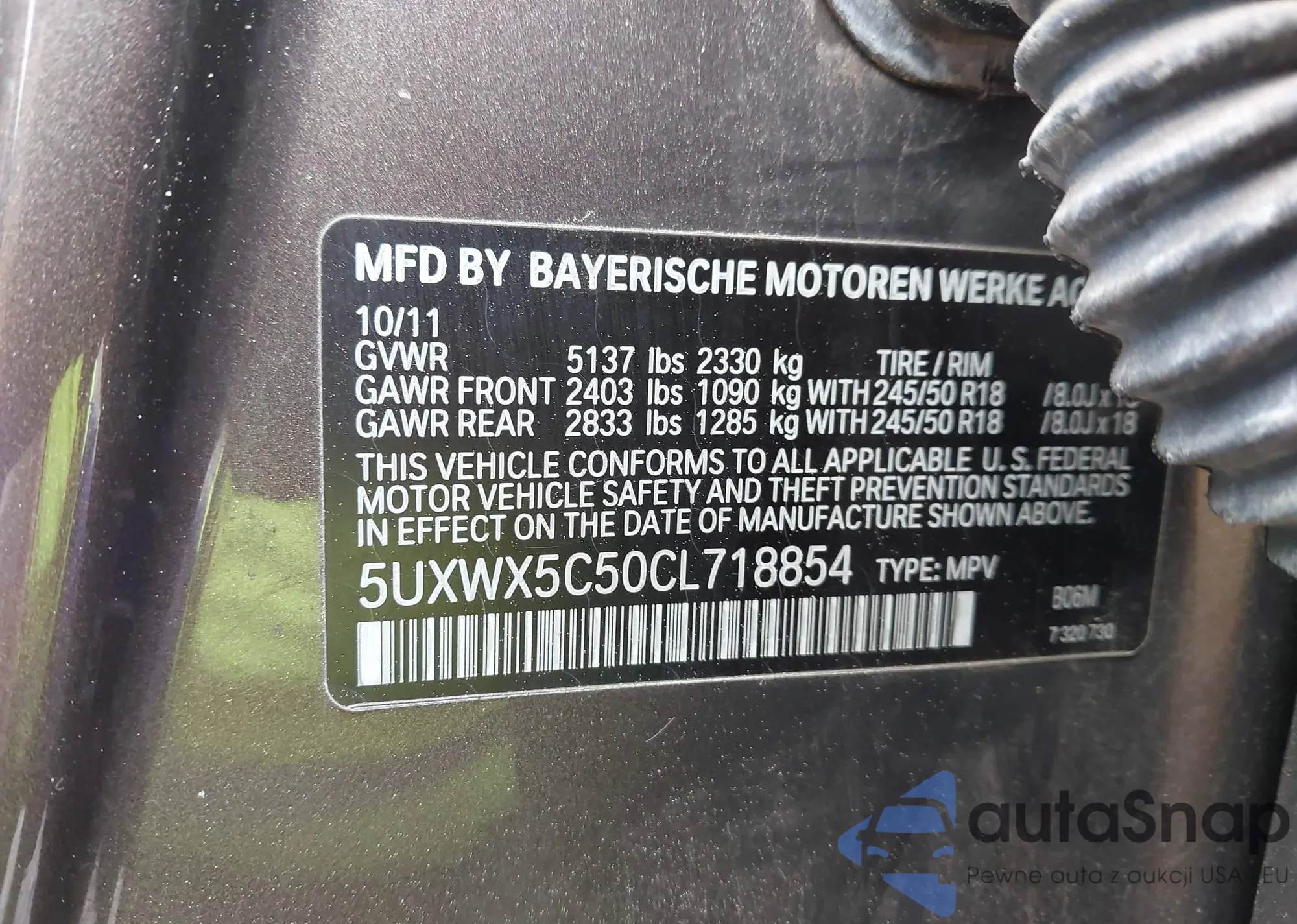 • VIN: 5UXWX5C50CL718854