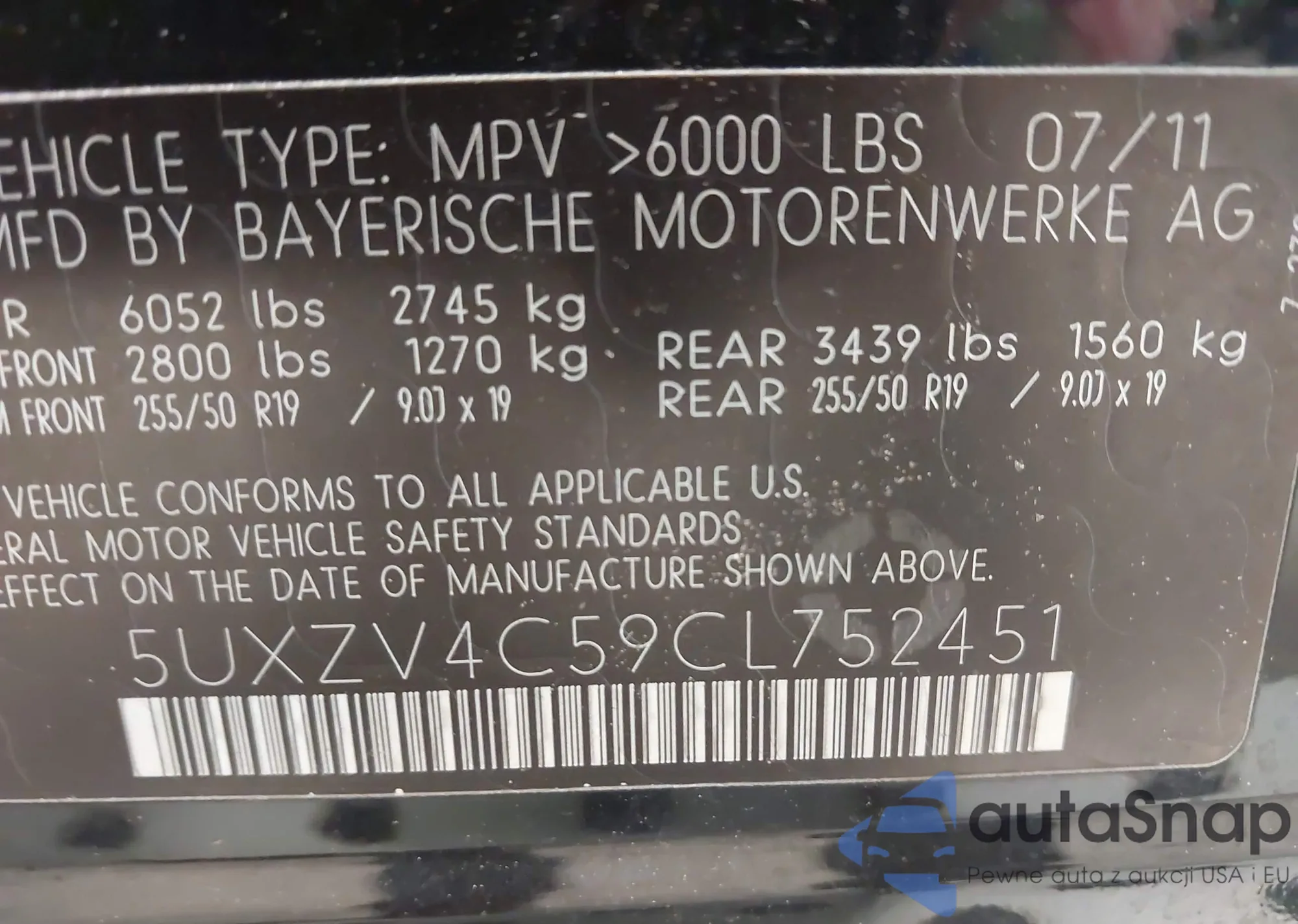 VIN: 5UXZV4C59CL752451