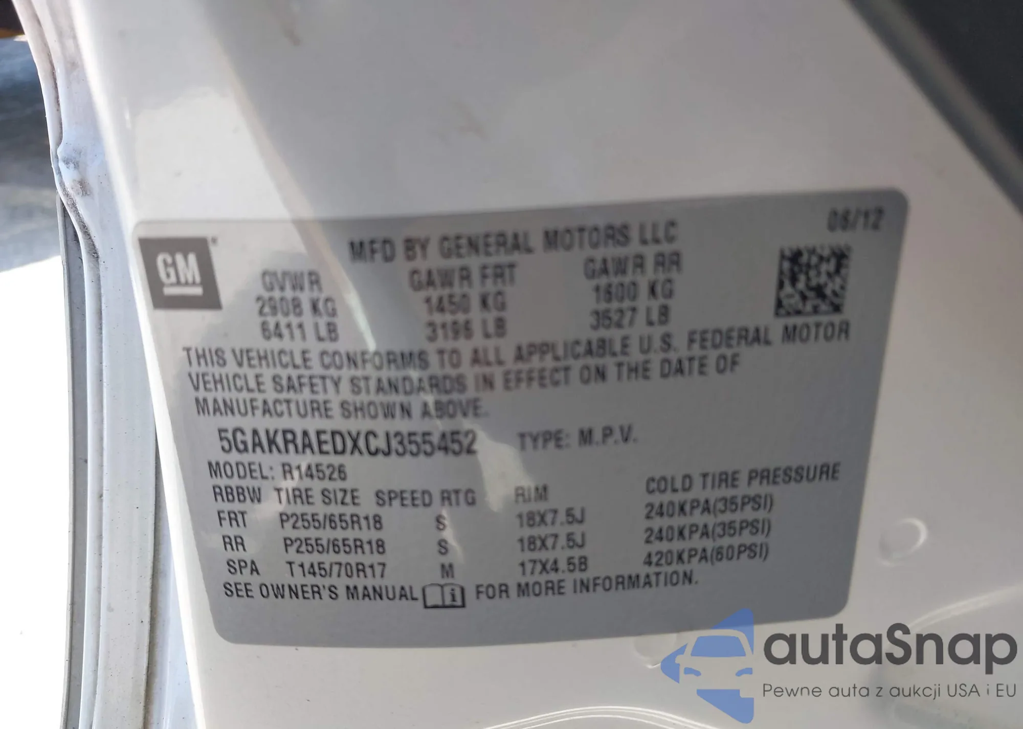 VIN: 5GAKRAEDXCJ355452