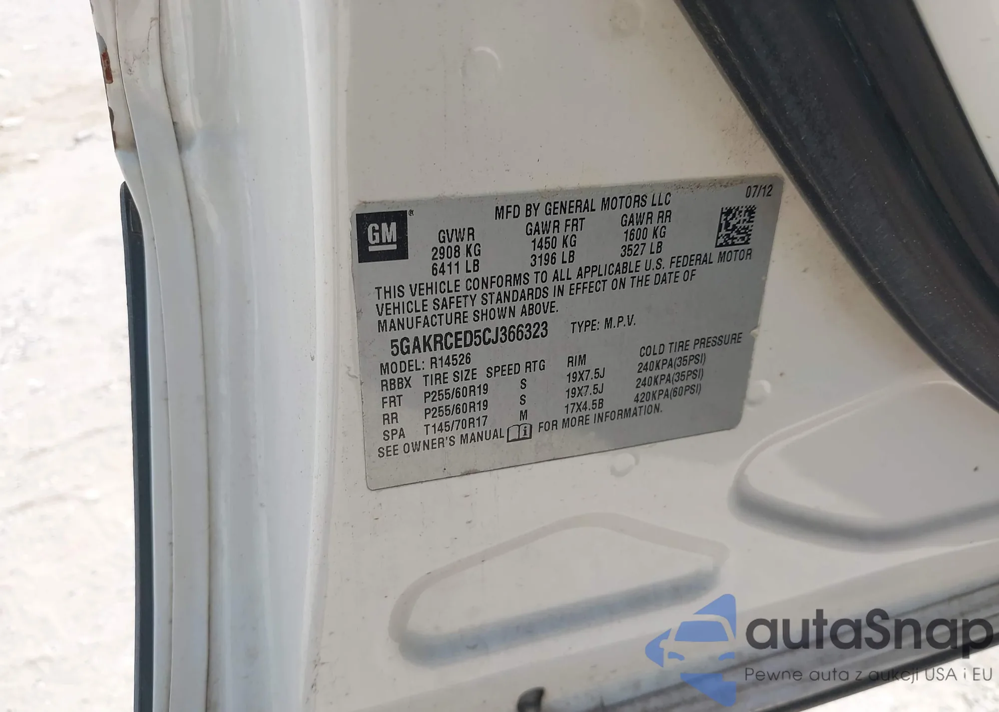 Samochód Buick Enclave 2012 (VIN 5GAKRCED5CJ366323) był już licytowany 1 razy i/lub sprzedaje go niezweryfikowany sprzedawca. Zalecamy raport Carfax i potwierdzenie możliwości rejestracji pojazdu przed zakupem.