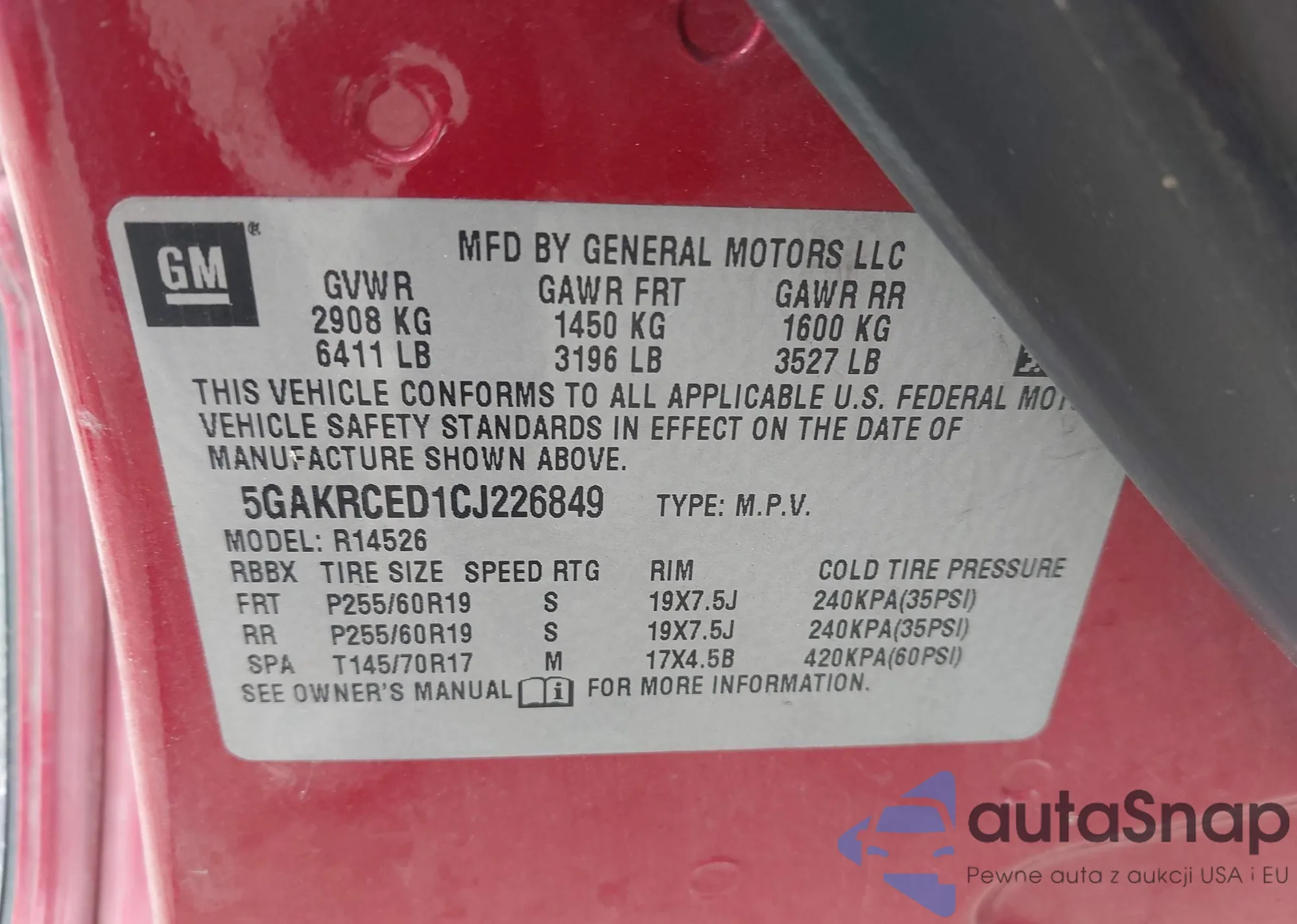 • VIN: 5GAKRCED1CJ226849