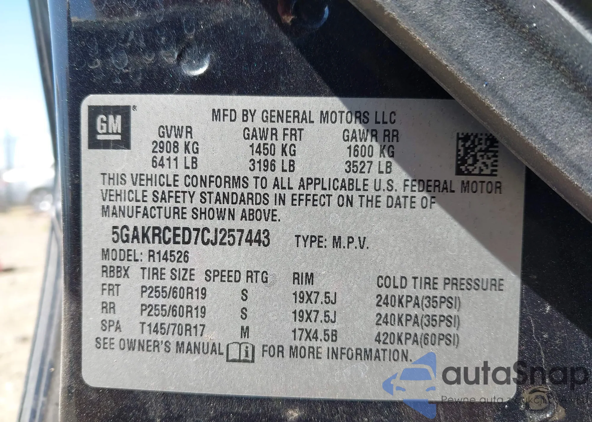 VIN: 5GAKRCED7CJ257443