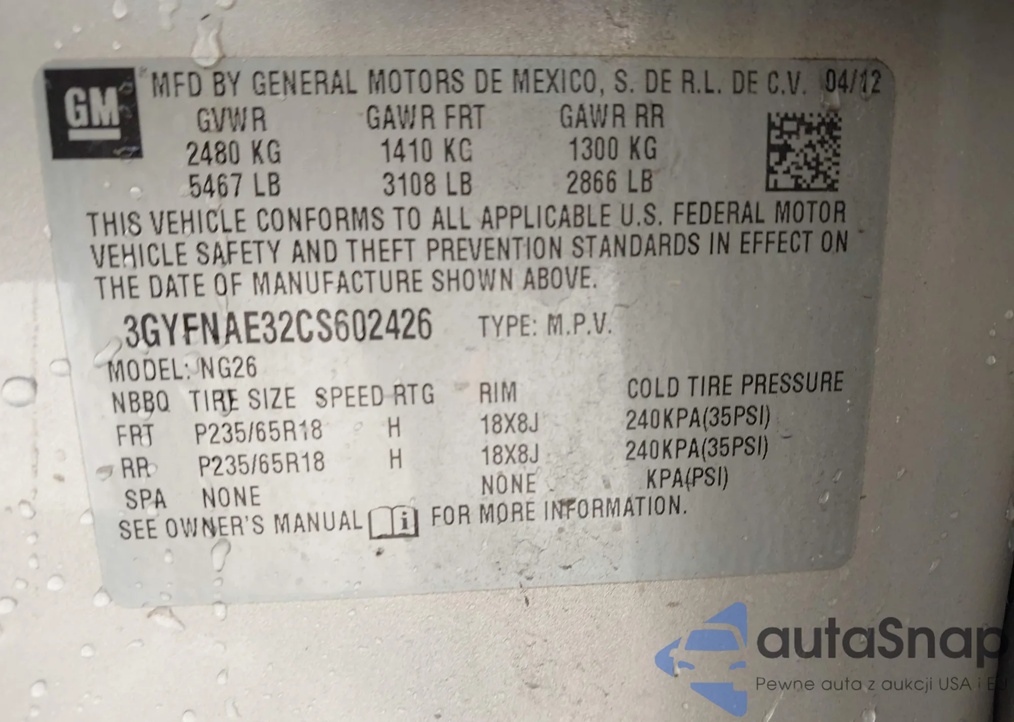 VIN: 3GYFNAE32CS602426
