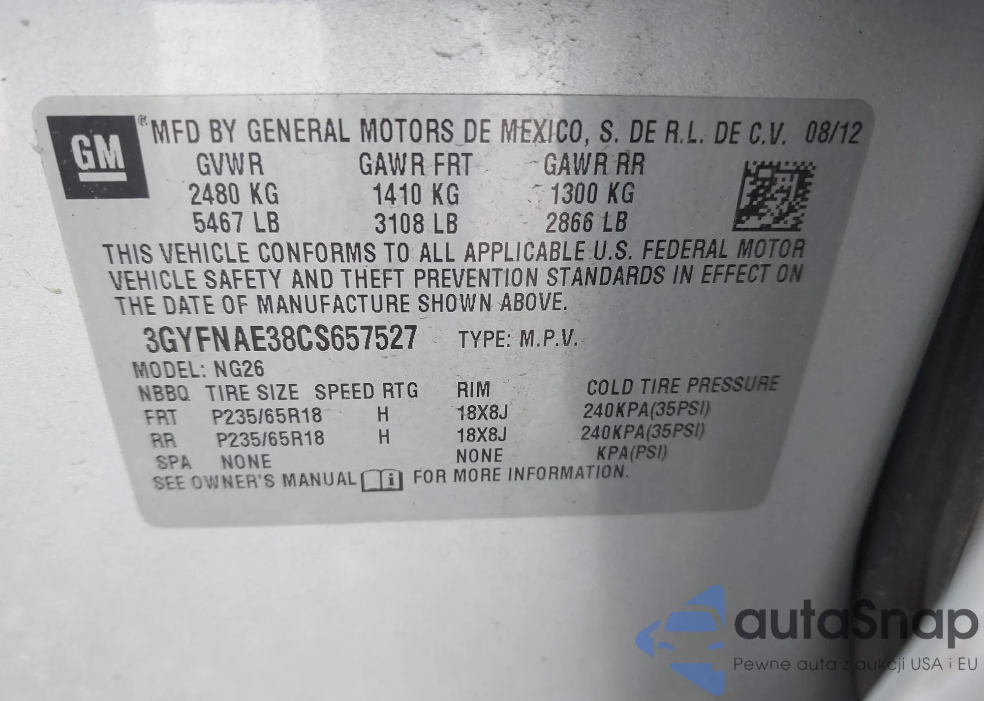 VIN: 3GYFNAE38CS657527