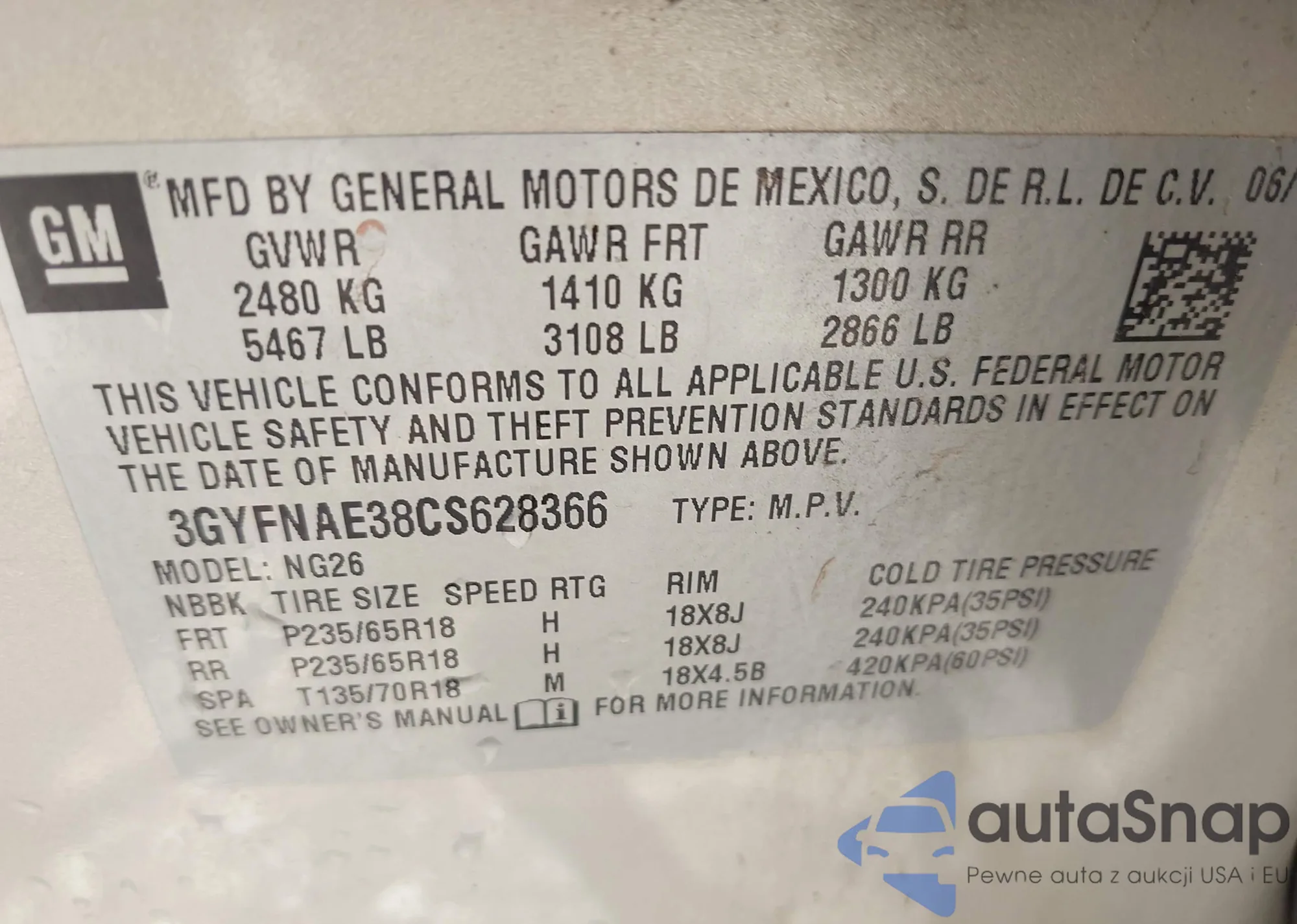 VIN: 3GYFNAE38CS628366