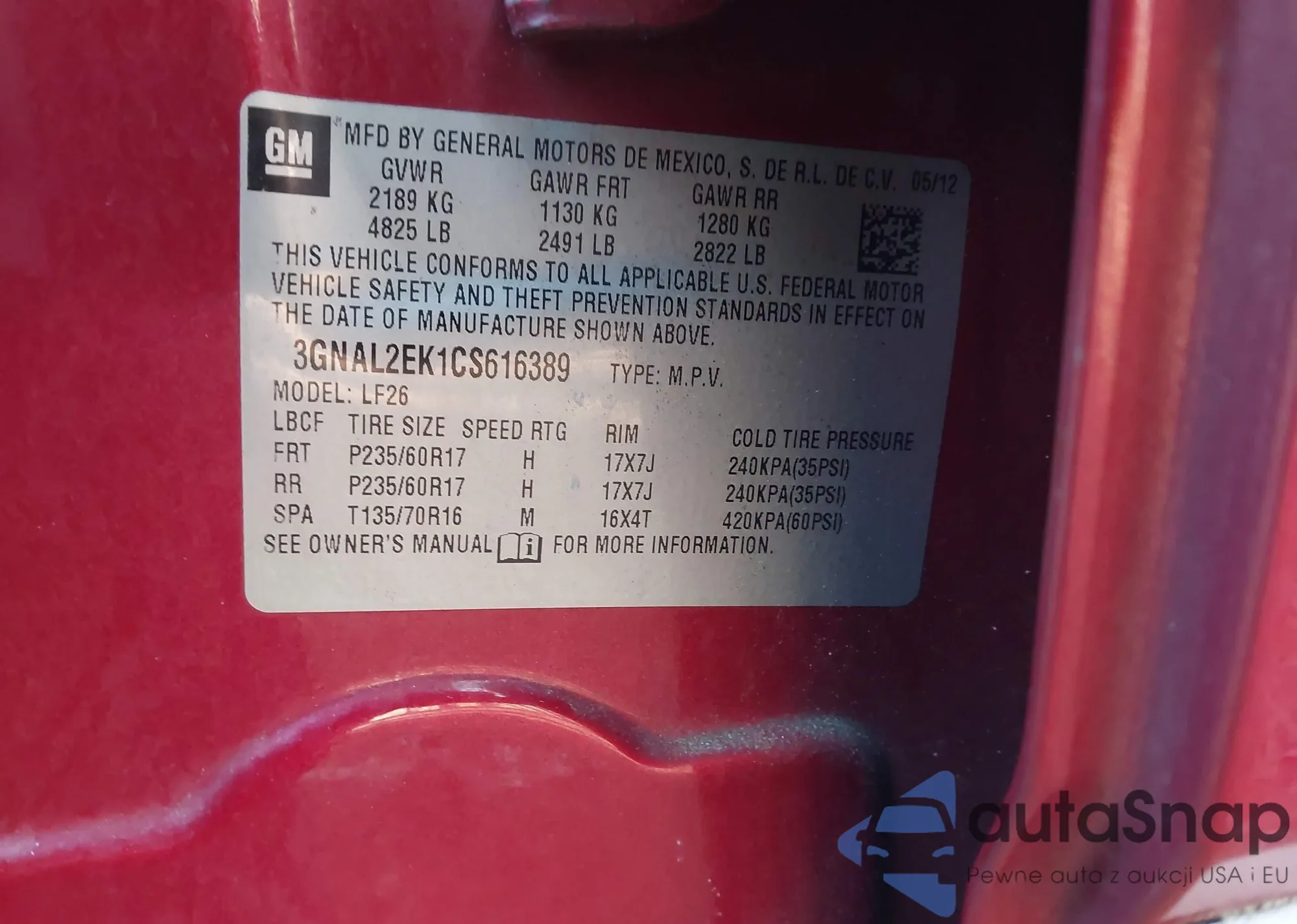 • VIN: 3GNAL2EK1CS616389