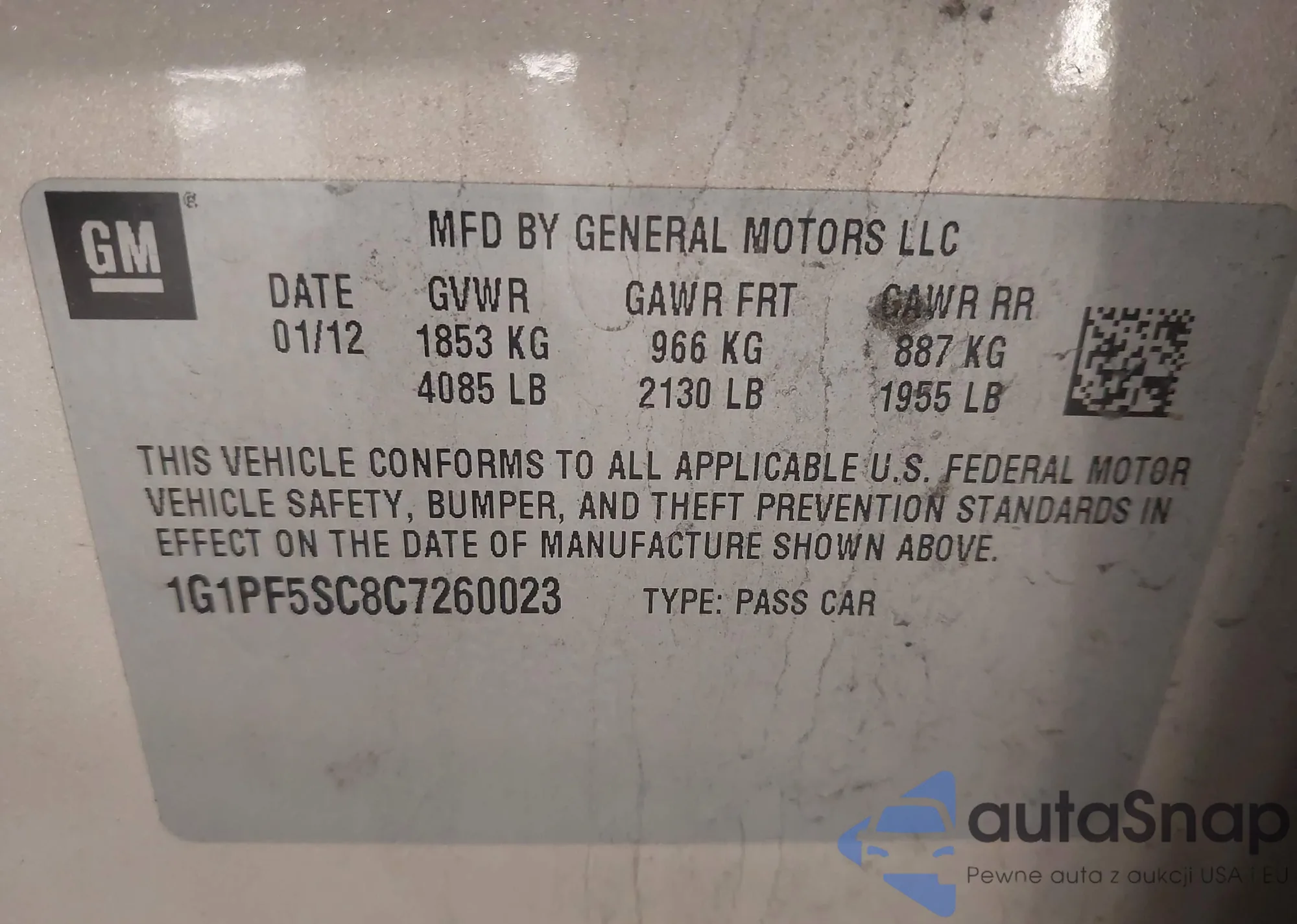 VIN: 1G1PF5SC8C7260023