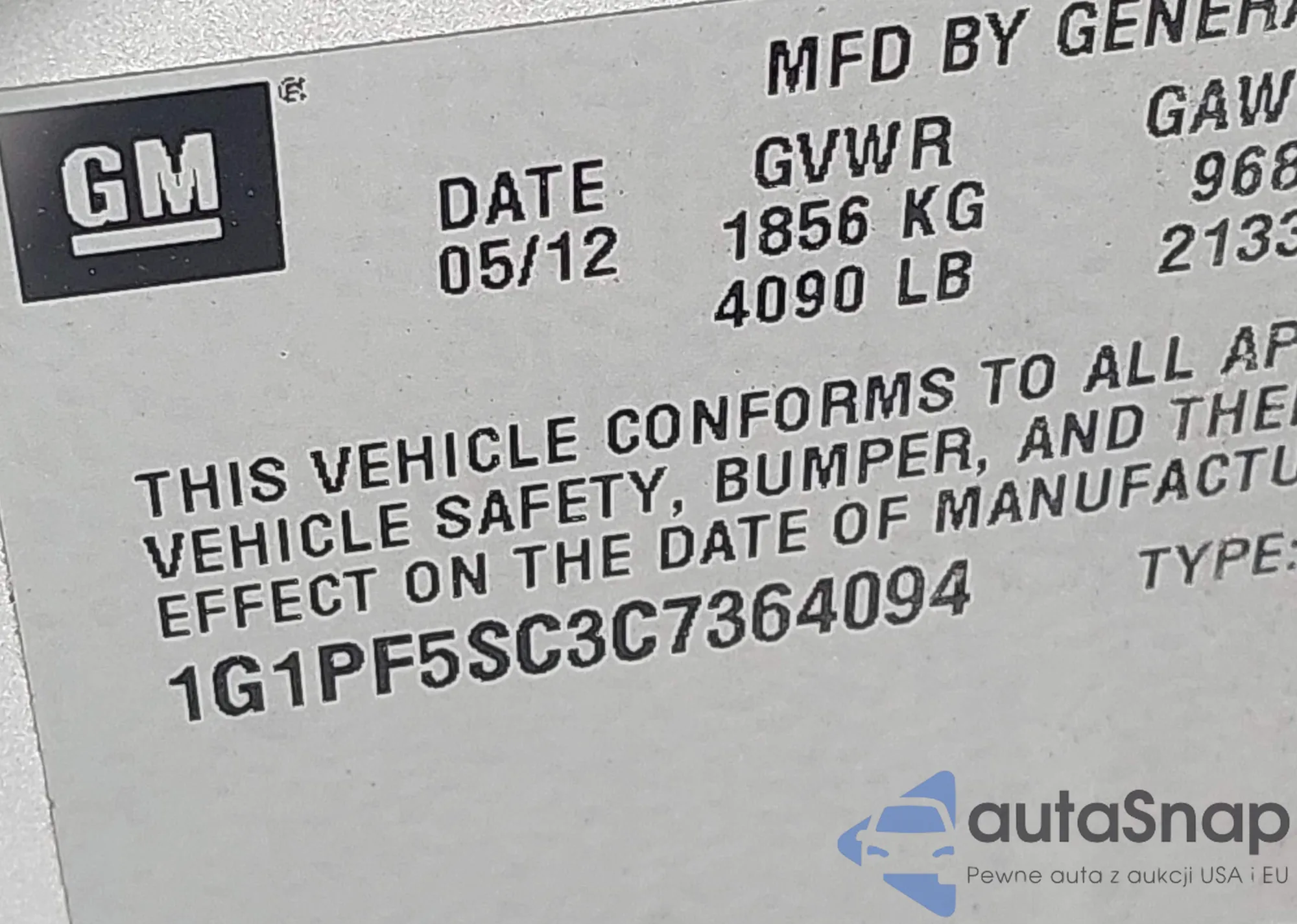 VIN: 1G1PF5SC3C7364094