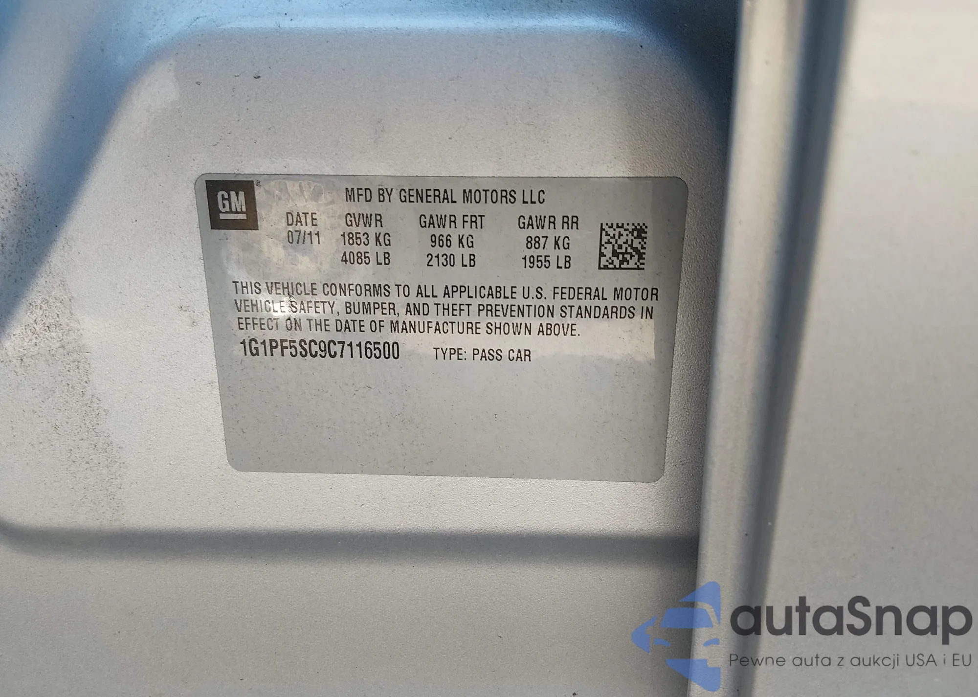 • VIN: 1G1PF5SC9C7116500