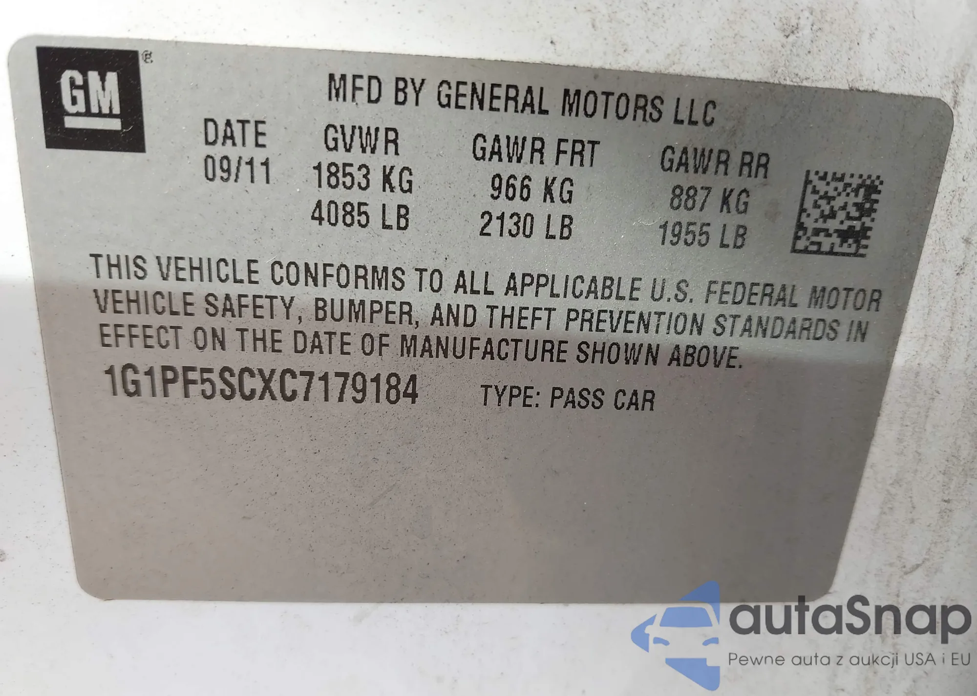 • VIN: 1G1PF5SCXC7179184