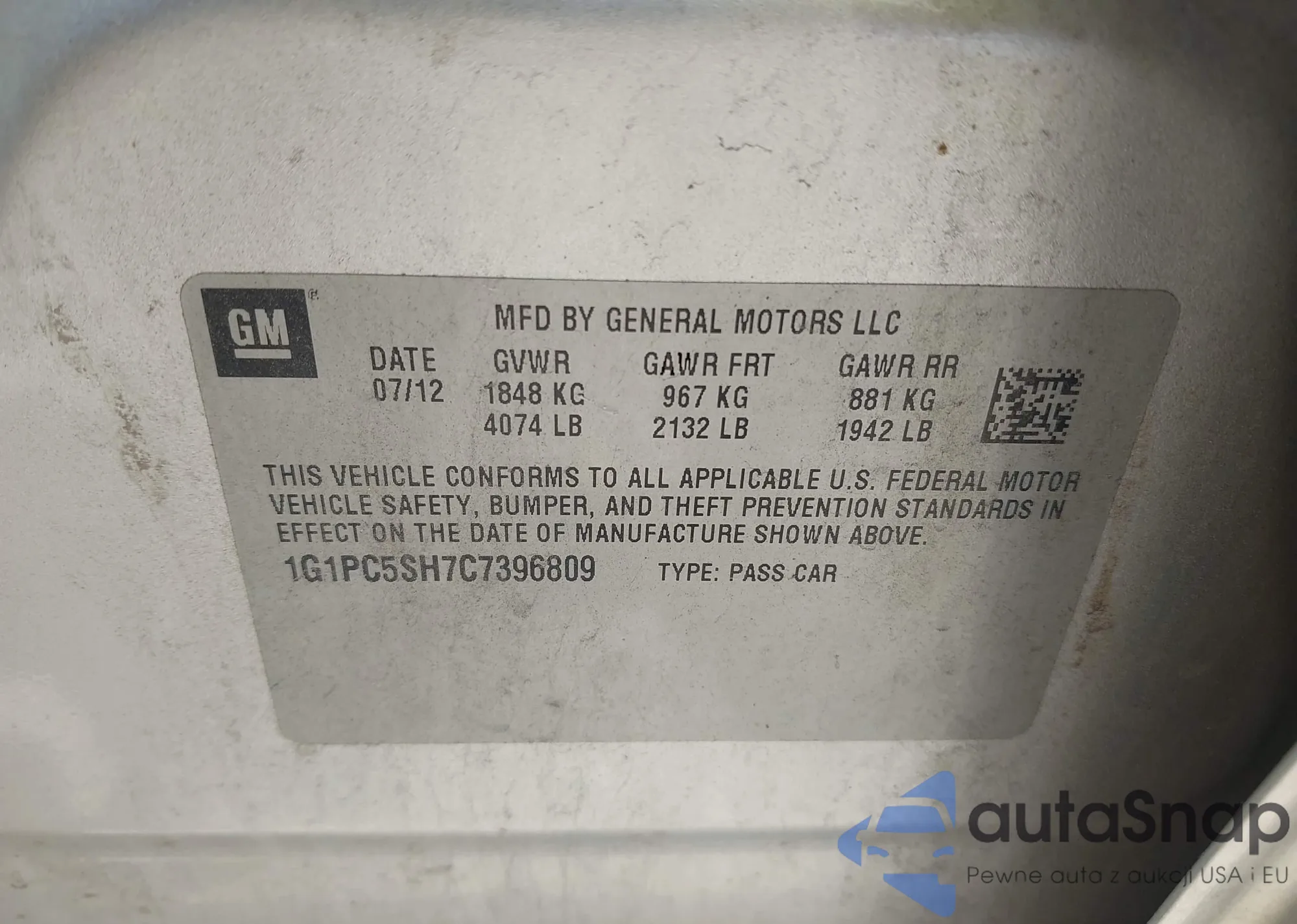 VIN: 1G1PC5SH7C7396809