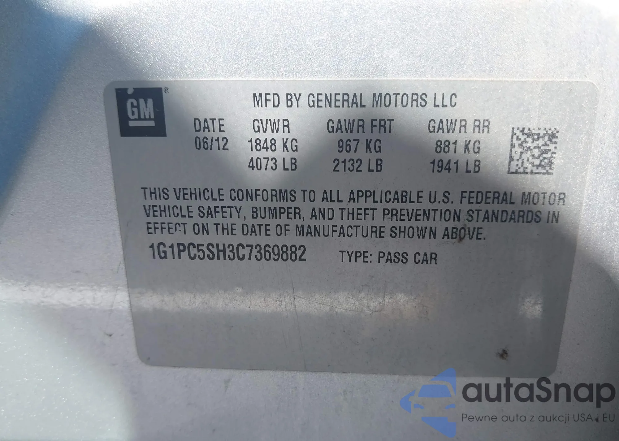 VIN: 1G1PC5SH3C7369882