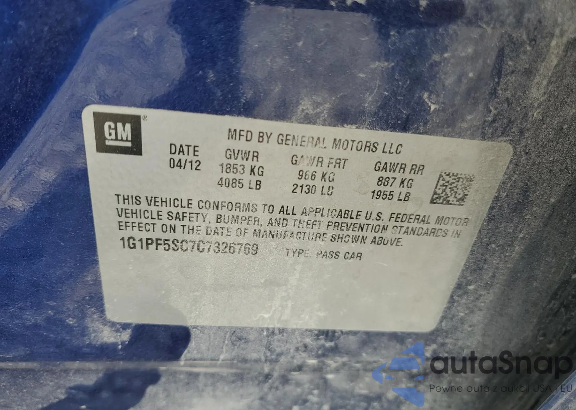 Samochód Chevrolet Cruze 2012 (VIN 1G1PF5SC7C7326769) ma dokumenty uniemożliwiające rejestrację. Mogą pojawić się trudności przy eksporcie i rejestracji. Skontaktuj się z ekspertami AutaSnap w celu znalezienia alternatywy.