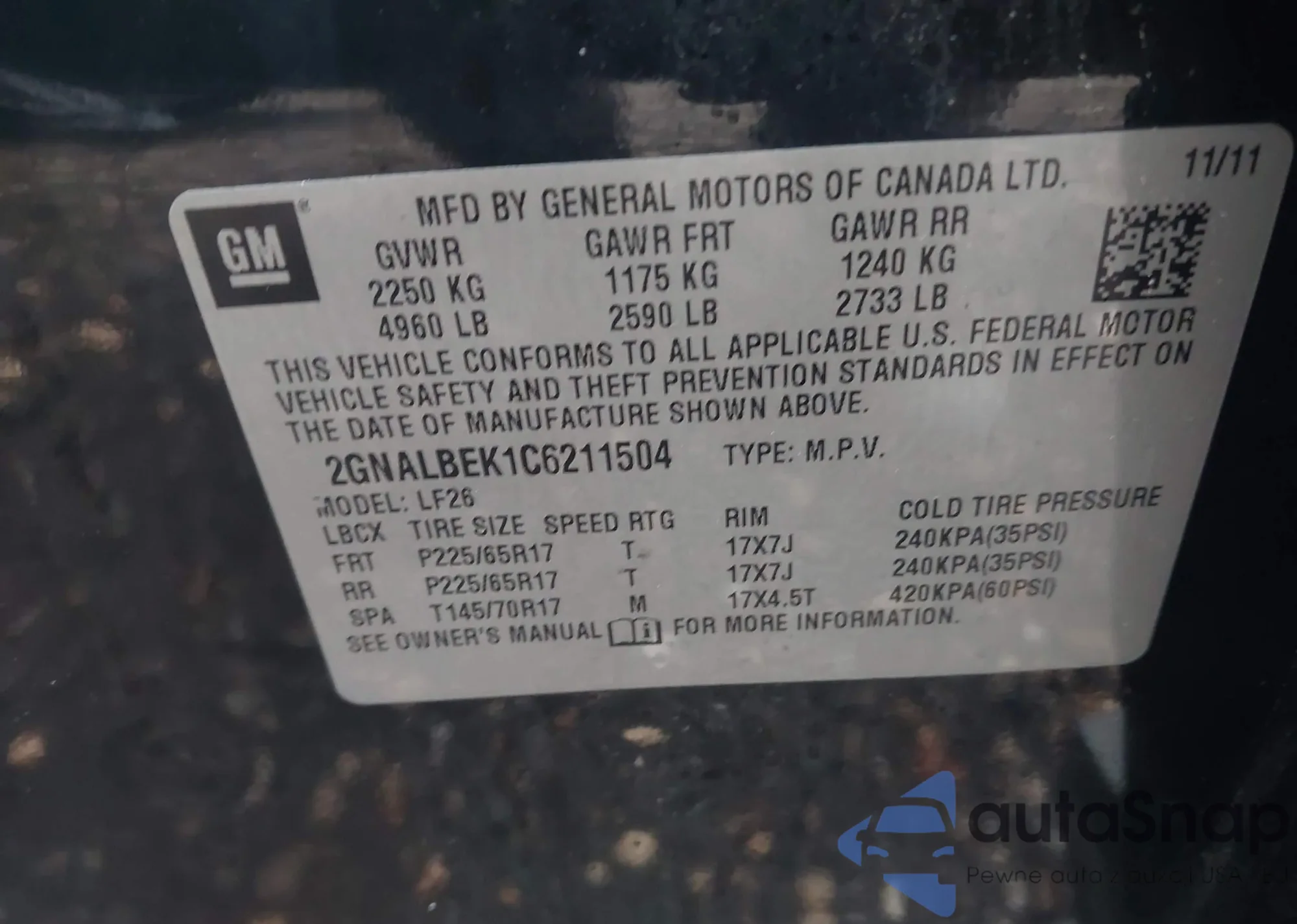 Samochód Chevrolet Equinox 2012 (VIN 2GNALBEK1C6211504) nie był wcześniej licytowany. Dokumenty są czyste, przebieg odpowiada lub jest niższy niż średnia rynku. Sprzedaje go firma ubezpieczeniowa – polecamy zakup. Dostawa do portu zajmie ok. 6–8 tygodni.