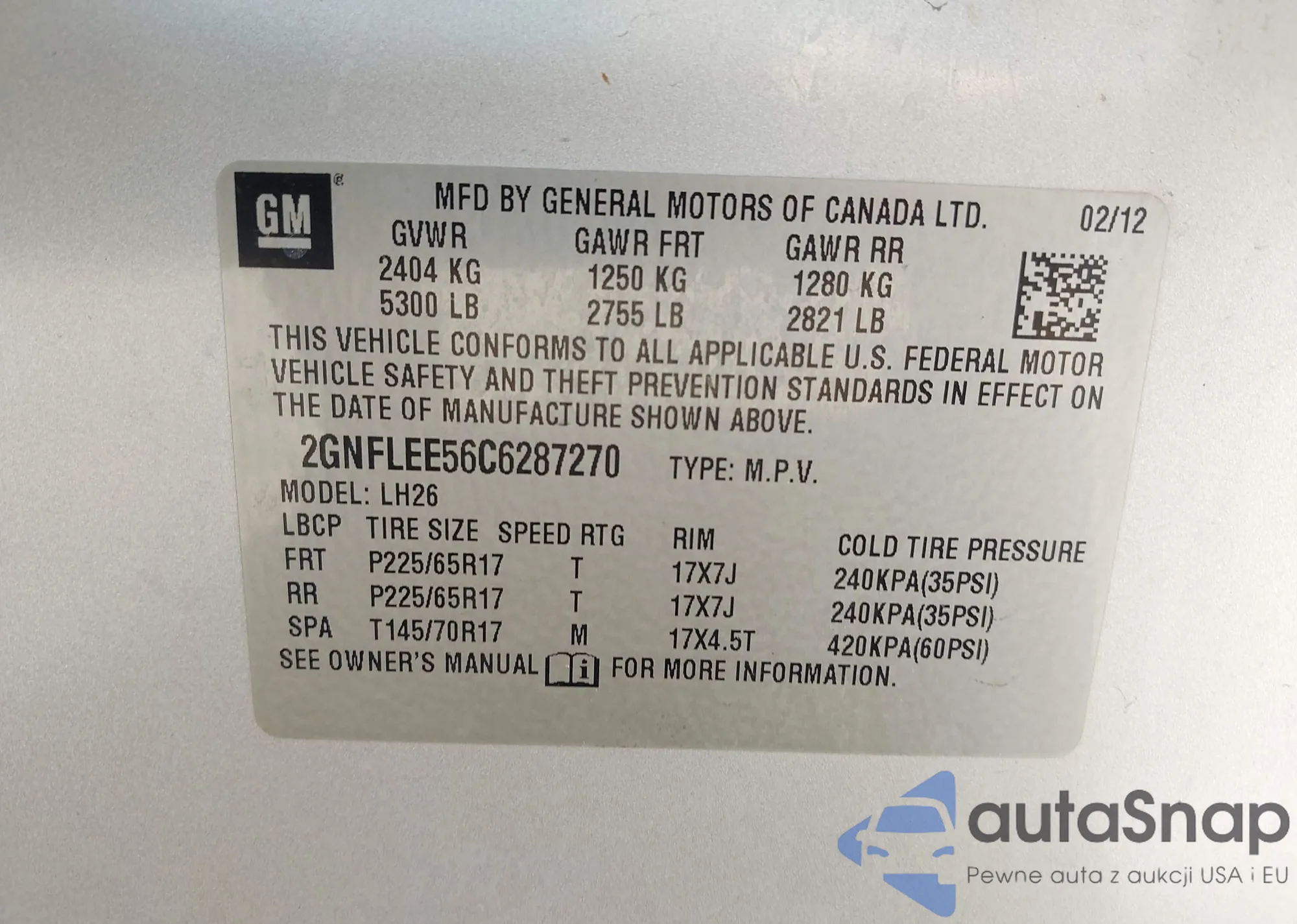 Samochód Chevrolet Equinox 2012 (VIN 2GNFLEE56C6287270) nie był wcześniej licytowany. Dokumenty są czyste, przebieg odpowiada lub jest niższy niż średnia rynku. Sprzedaje go firma ubezpieczeniowa – polecamy zakup. Dostawa do portu zajmie ok. 6–8 tygodni.