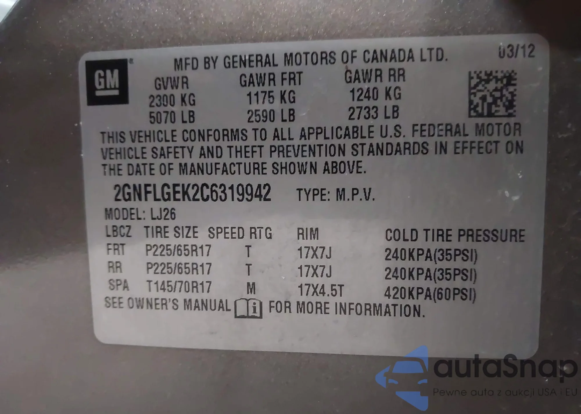 Samochód Chevrolet Equinox 2012 (VIN 2GNFLGEK2C6319942) nie był wcześniej licytowany. Dokumenty są czyste, przebieg odpowiada lub jest niższy niż średnia rynku. Sprzedaje go firma ubezpieczeniowa – polecamy zakup. Dostawa do portu zajmie ok. 6–8 tygodni.