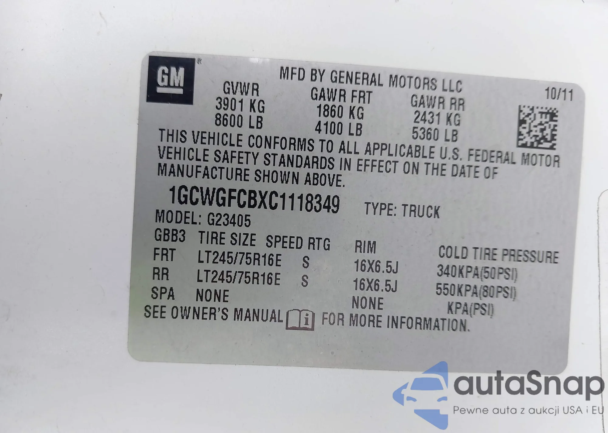 VIN: 1GCWGFCBXC1118349