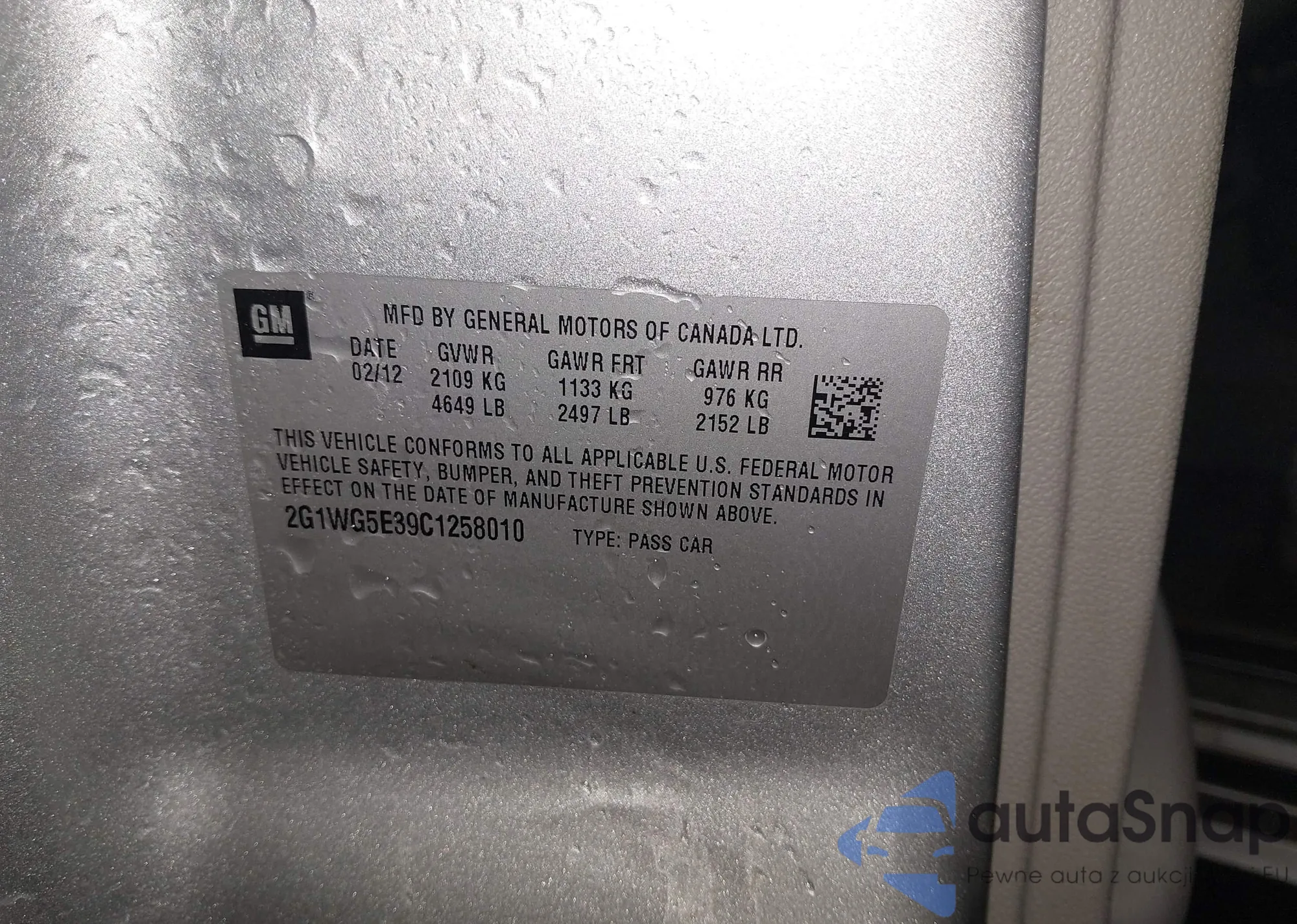 VIN: 2G1WG5E39C1258010